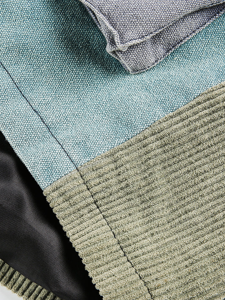 🎨 Patchwork Color Block Design – Unique combination of earthy and muted tones for a modern, artistic workwear style.