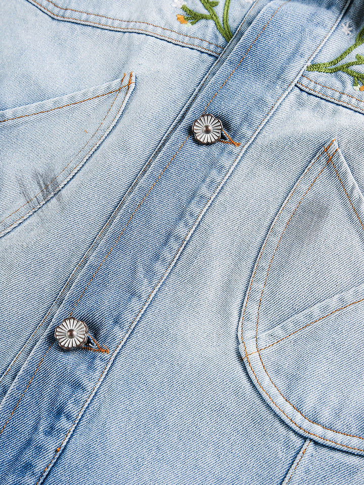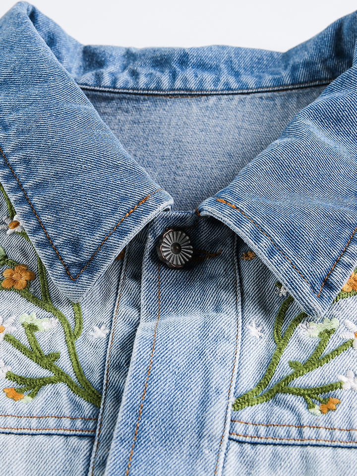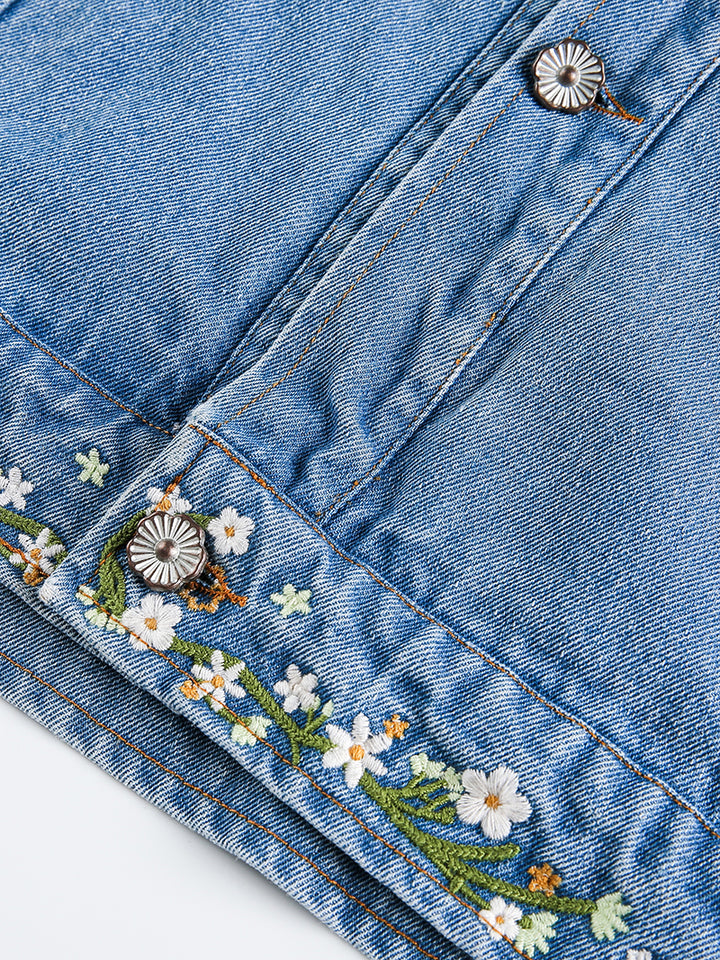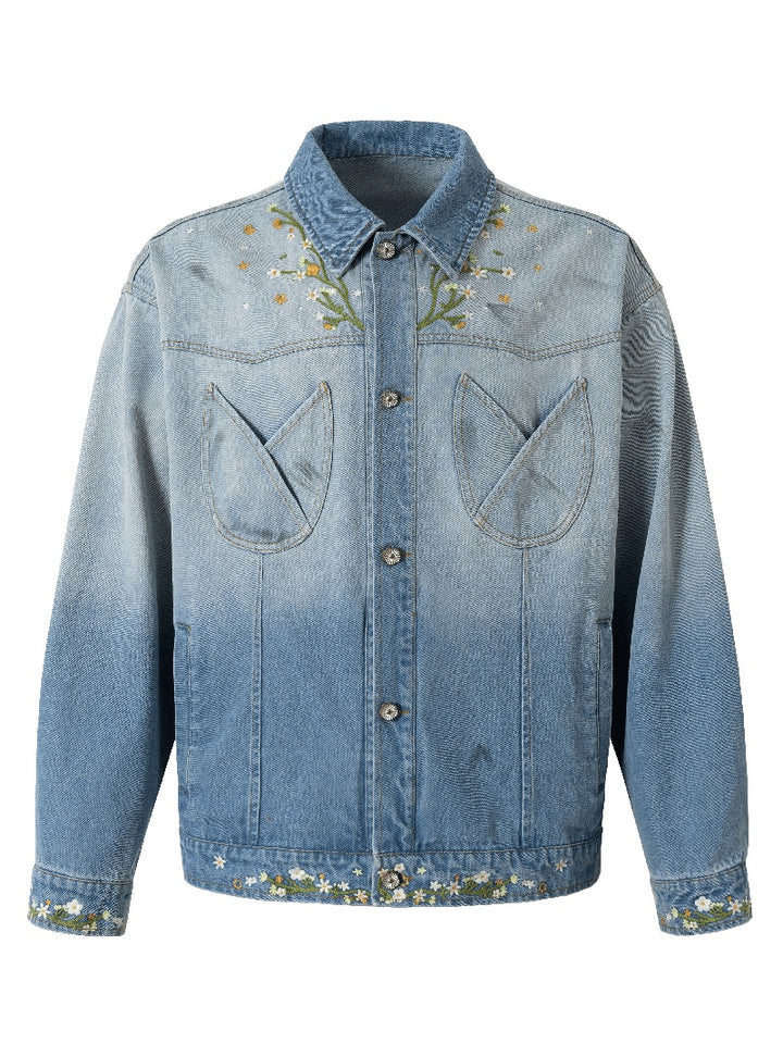 Refresh your outerwear collection with this ombre embroidered denim jacket, designed with a blue gradient wash and charming floral details. The relaxed fit ensures all-day comfort while allowing room for layering over tops, sweaters, or dresses. Made from a high-quality fabric blend of cotton, viscose, and polyester, it combines softness with durability, making it suitable for everyday wear. Available in sizes M to XXL, this jacket is perfect for creating effortless streetwear looks or adding a touch of vintage-inspired charm to your outfit. A must-have piece that transitions easily from casual daytime outings to evening gatherings.