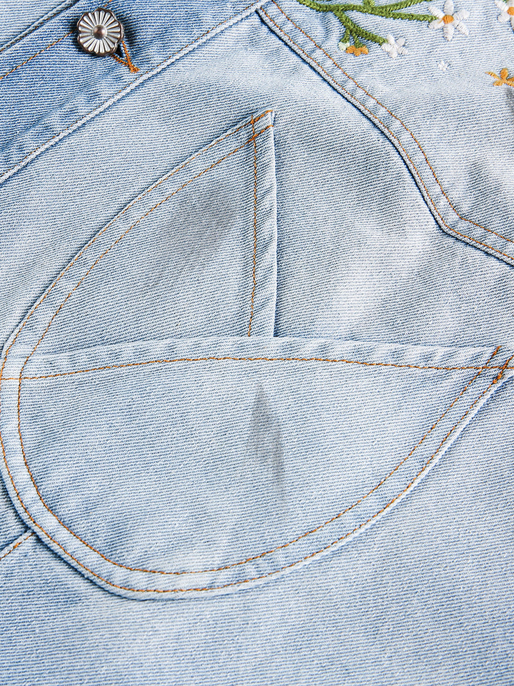 🌸 Elegant Gradient Design – Features a stylish ombre denim wash with delicate floral embroidery for a chic and feminine look.