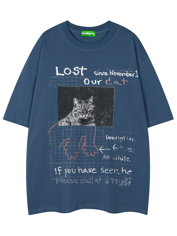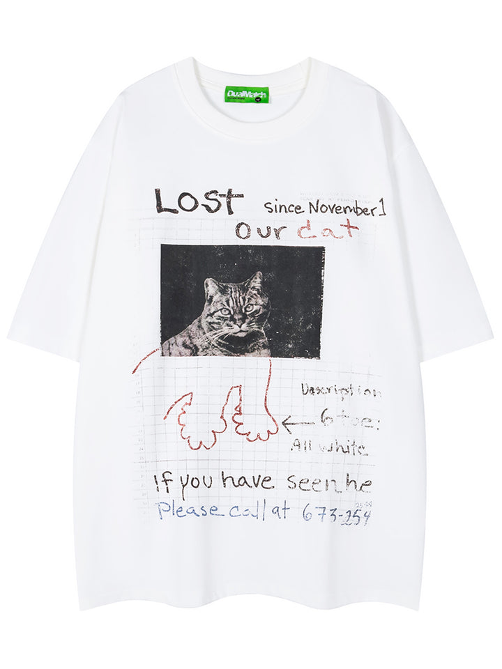 Upgrade your casual style with this oversized unisex T-shirt featuring a standout cat-themed graphic inspired by classic lost-and-found posters. The shirt is made from a high-quality blend of 50% cotton and 50% polyester, using 32s 250g cool-touch plain weave fabric that keeps you feeling fresh and comfortable all day. Its relaxed oversized cut is perfect for laid-back streetwear outfits or creative everyday wear. Whether you're looking to express your love for pets or stand out with a unique design, this tee makes a bold, wearable statement.