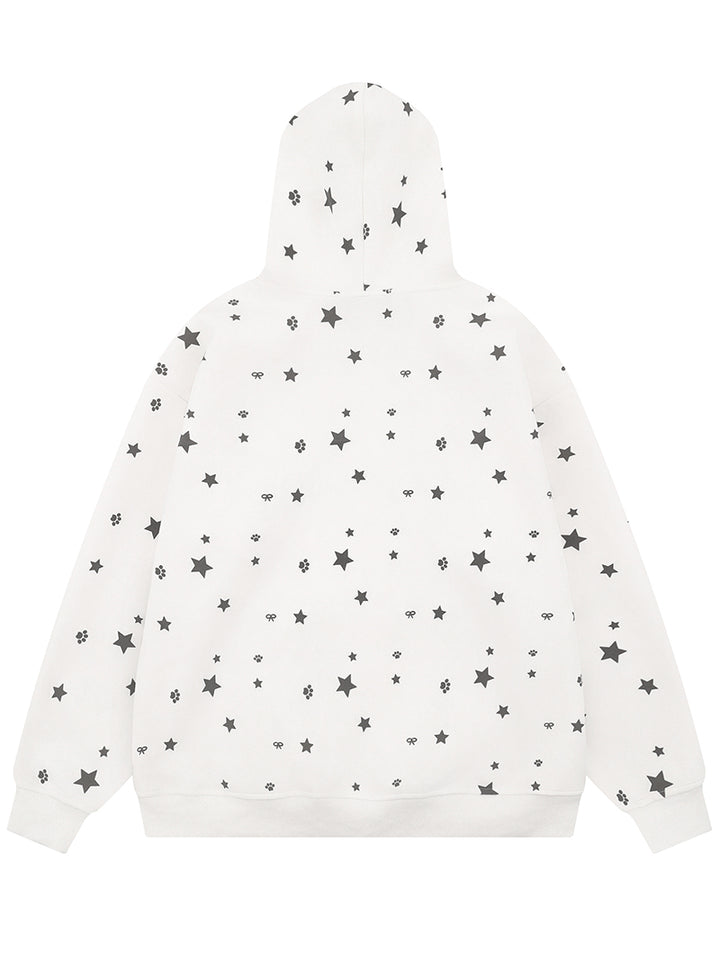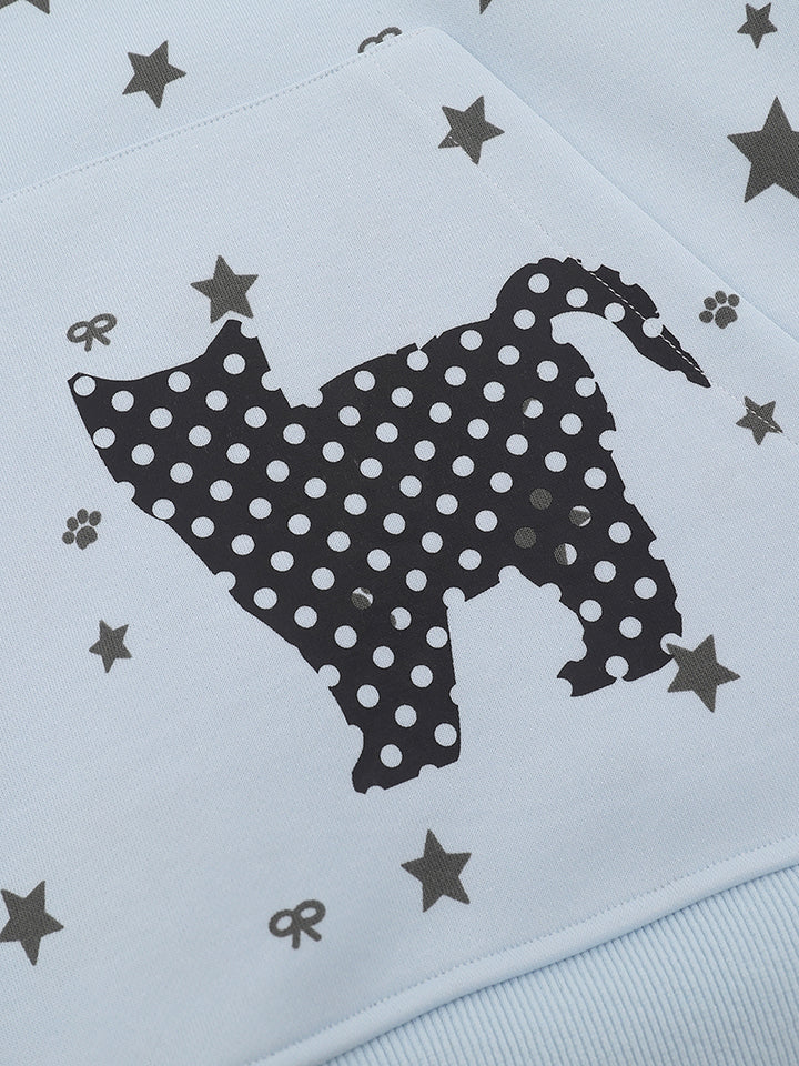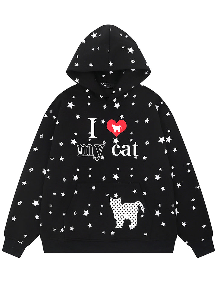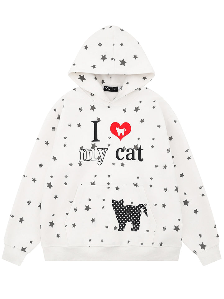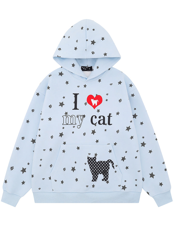 Elevate your everyday wardrobe with this adorable oversized hoodie featuring a cat-themed graphic and playful star print. Designed with high-definition discharge printing for vivid details, this hoodie blends comfort and charm in one standout piece. The soft 400g cotton-polyester fleece offers all-day warmth and breathability, while the relaxed fit ensures comfort whether you're lounging at home or heading out. Available in white, sky blue, and black, it's a perfect gift for cat lovers and fashion-forward individuals alike.