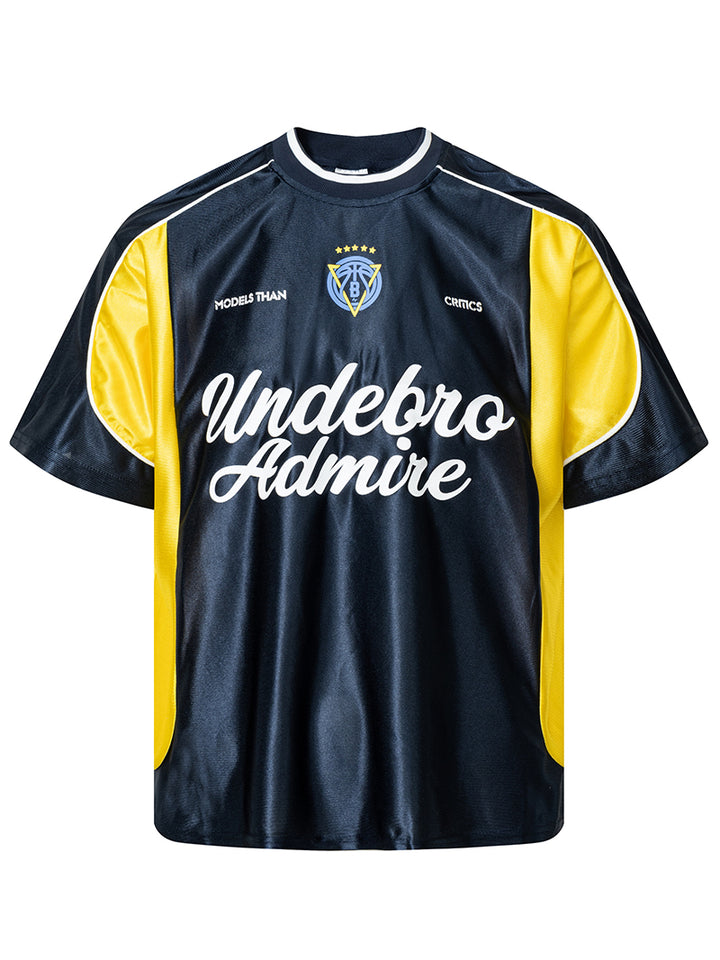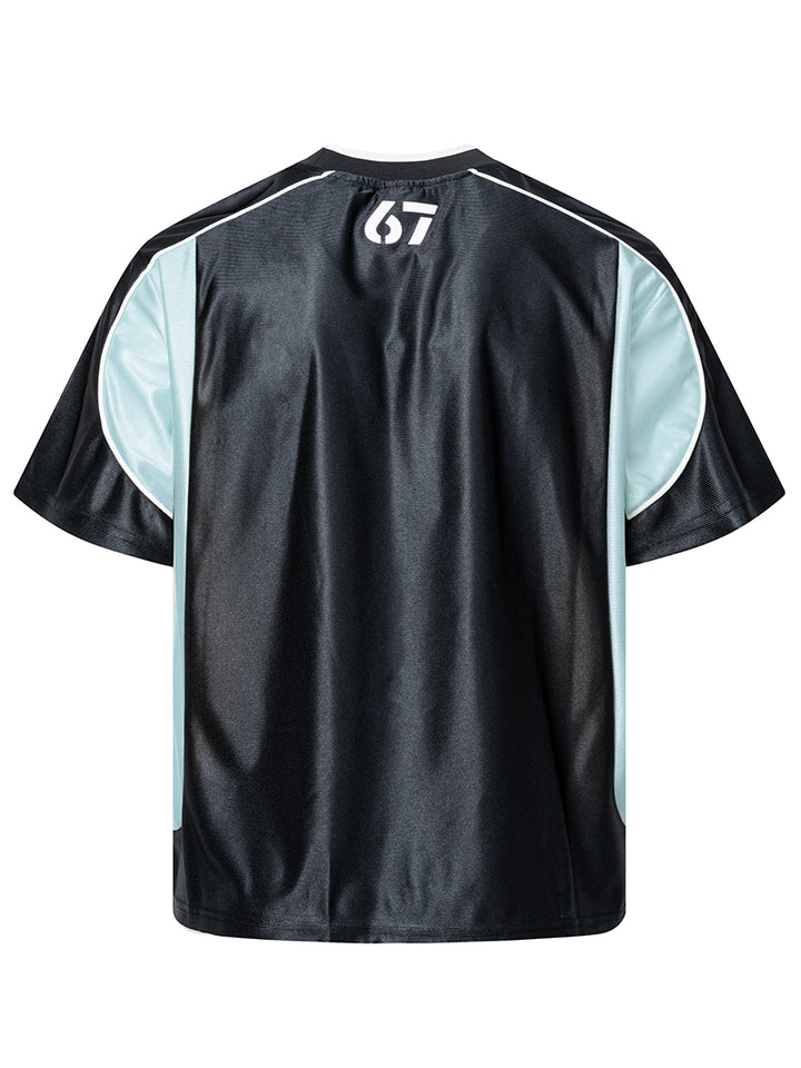 Upgrade your streetwear rotation with this oversized color block jersey tee, offered in sleek Black and deep Navy options. Crafted from 100% polyester, it provides lightweight breathability and a smooth, moisture-wicking feel that keeps you cool throughout the day. The relaxed fit and bold sleeve panels bring a sporty edge to any outfit, making it ideal for everyday wear, casual meetups, or styled under a jacket. Whether you're aiming for retro sports vibes or modern urban cool, this tee hits all the right notes.