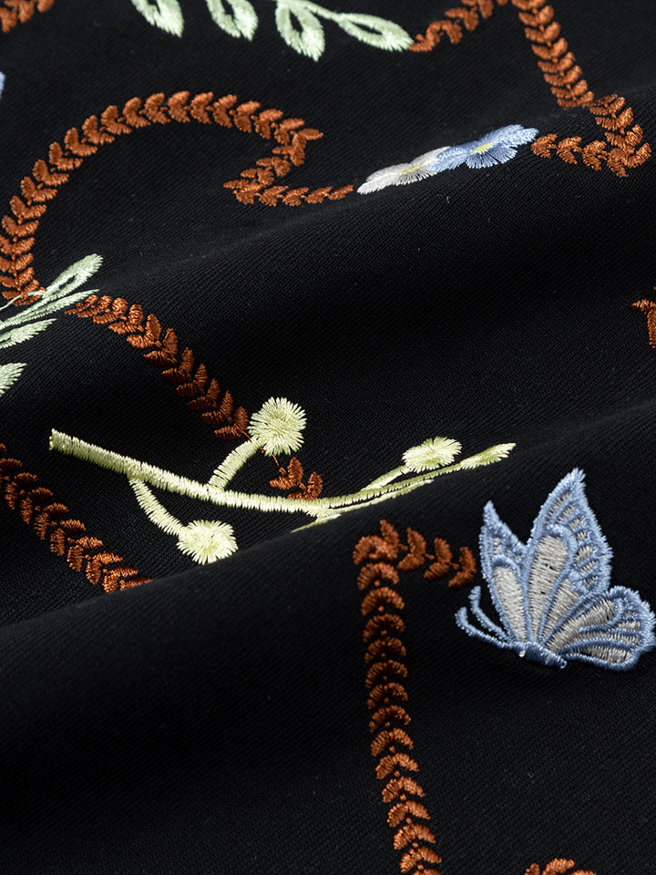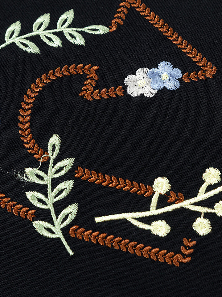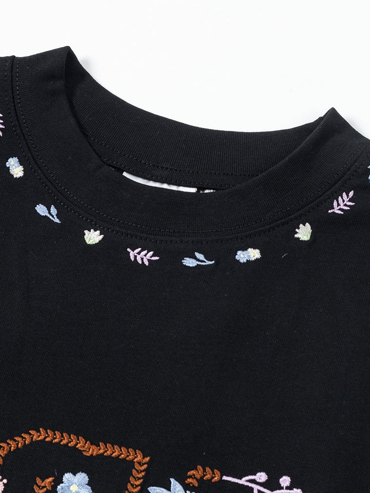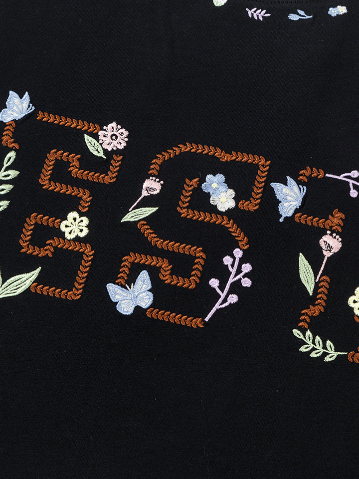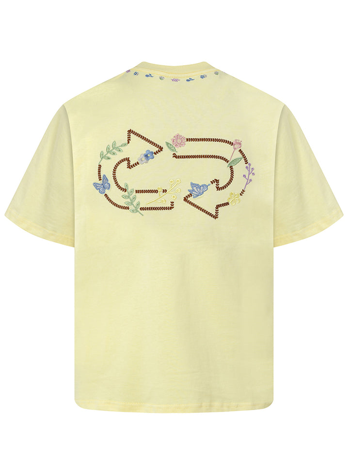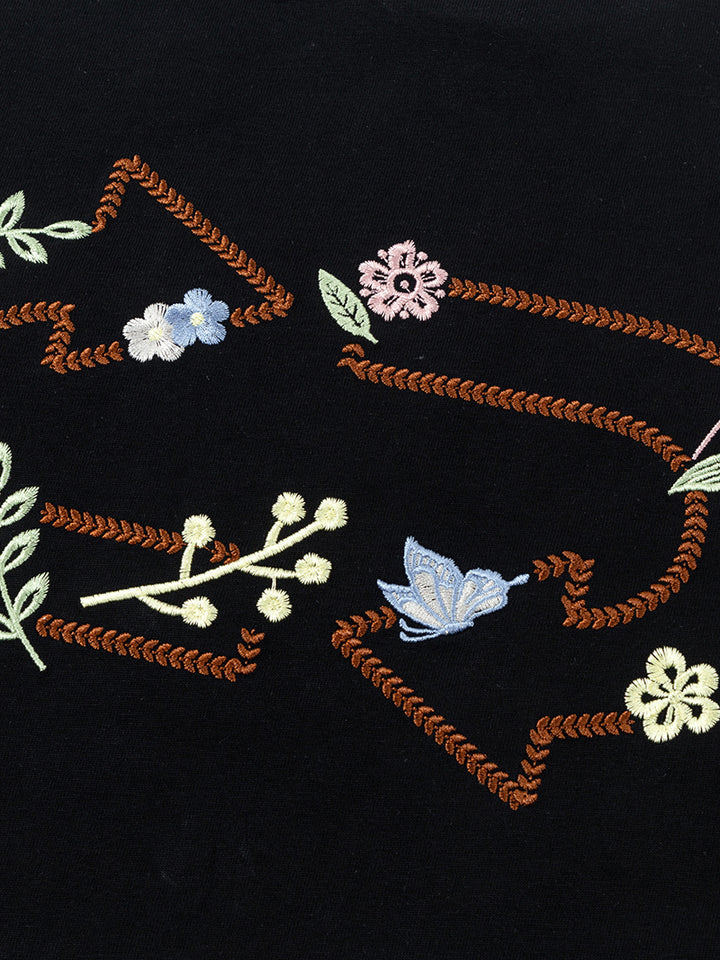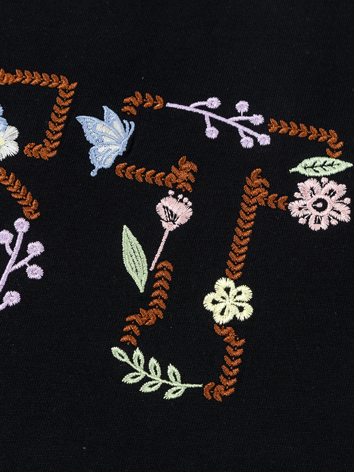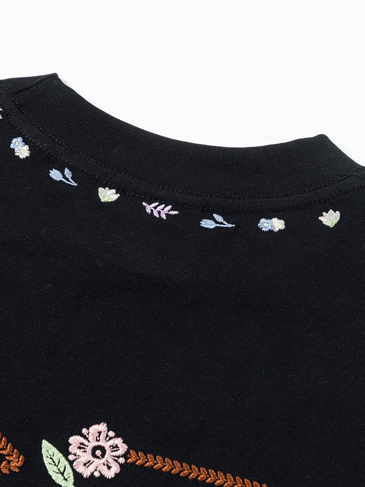 🌼 Artistic Floral Embroidery – Decorated with detailed floral and butterfly embroidery, this tee adds a touch of nature-inspired charm and creativity to your everyday outfit.