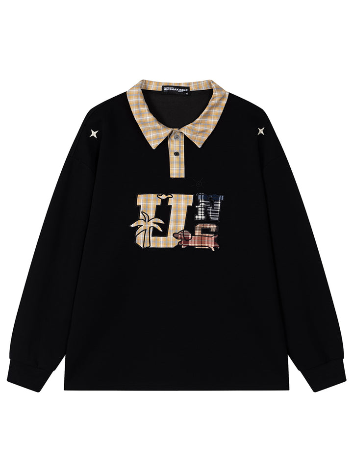 Upgrade your streetwear wardrobe with this eye-catching oversized long sleeve polo shirt, featuring a playful dog-themed graphic and a contrasting plaid collar design. Perfect for daily wear, lounging, or pairing with your favorite casual pieces, this tee blends soft cotton comfort with bold style. Whether you're heading out with friends or staying cozy indoors, this relaxed-fit shirt offers all-day ease with a creative twist. An ideal gift for fashion-forward individuals or pet lovers looking to add a standout item to their collection.
