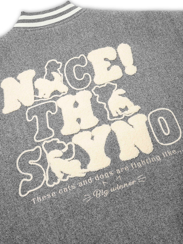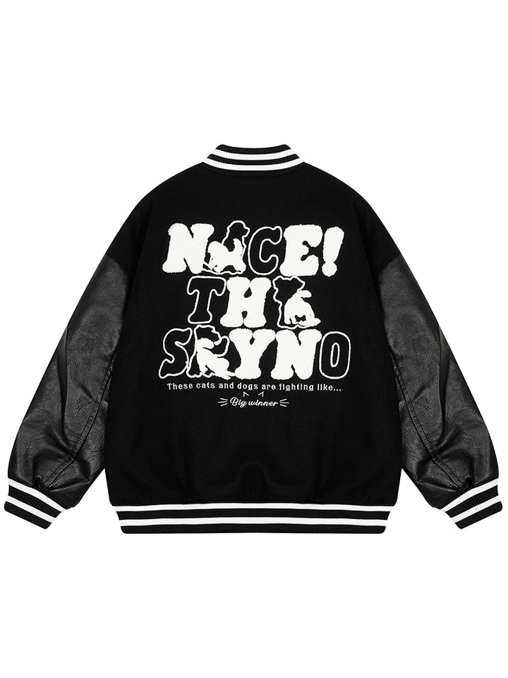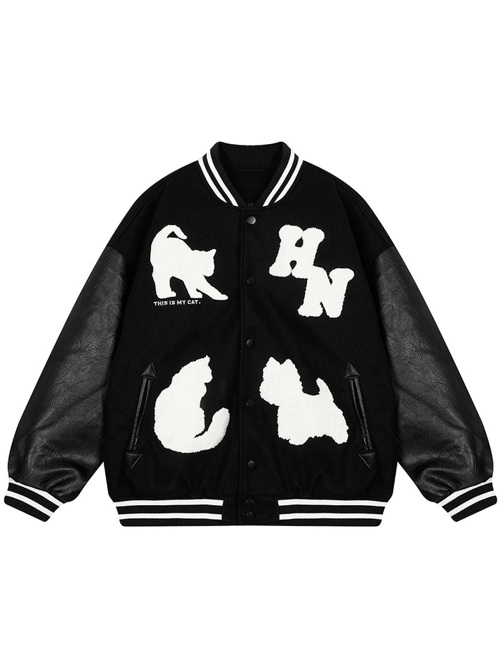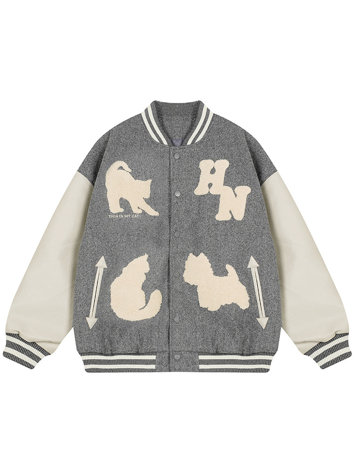 Upgrade your streetwear wardrobe with this standout varsity jacket, combining playful pet-inspired graphics with a bold color block design. Featuring textured chenille-style cat and dog patches, this jacket adds a unique and expressive touch to your outfit. The oversized fit ensures all-day comfort while delivering a relaxed, trendy silhouette ideal for layering. Crafted from durable fabric with soft lining, it’s suitable for everyday wear in any season. Perfect for fashion-forward individuals and pet lovers alike, this jacket makes a thoughtful and stylish gift as well as a must-have addition to any modern casual wardrobe.