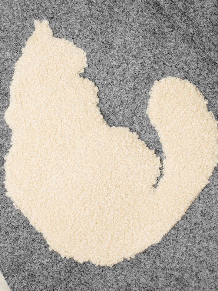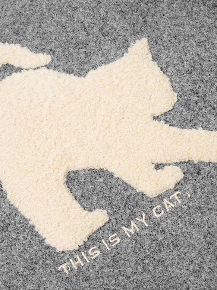 🐾 Playful Pet Graphics – Features bold chenille-style cat and dog silhouette patches for a fun and expressive streetwear look.