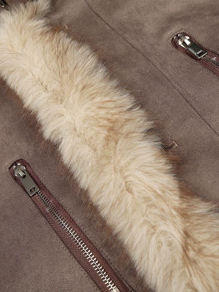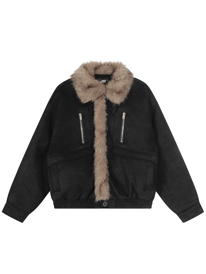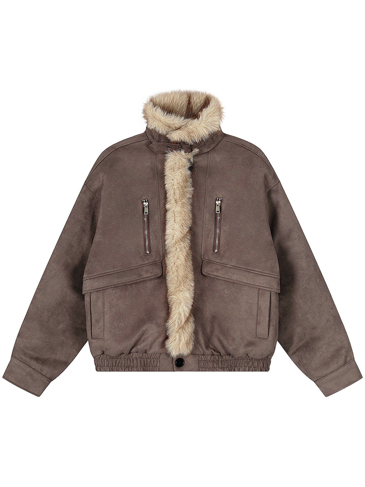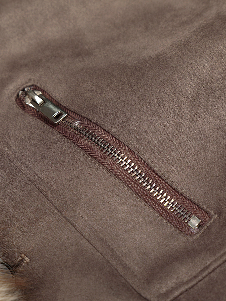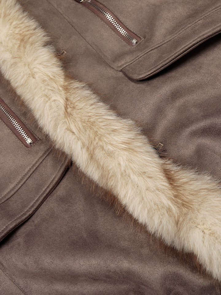 Elevate your winter wardrobe with this faux shearling-lined aviator jacket, designed for ultimate warmth and timeless appeal. Crafted with a smooth suede-look shell and a fully quilted interior, it offers exceptional insulation without sacrificing comfort. The soft fur-trimmed collar adds a touch of vintage charm, while functional zippered pockets and an elastic waistband ensure a secure fit. Perfect for layering over sweaters or hoodies, this jacket blends rugged durability with modern streetwear elegance—ideal for cold-weather adventures or city commutes.