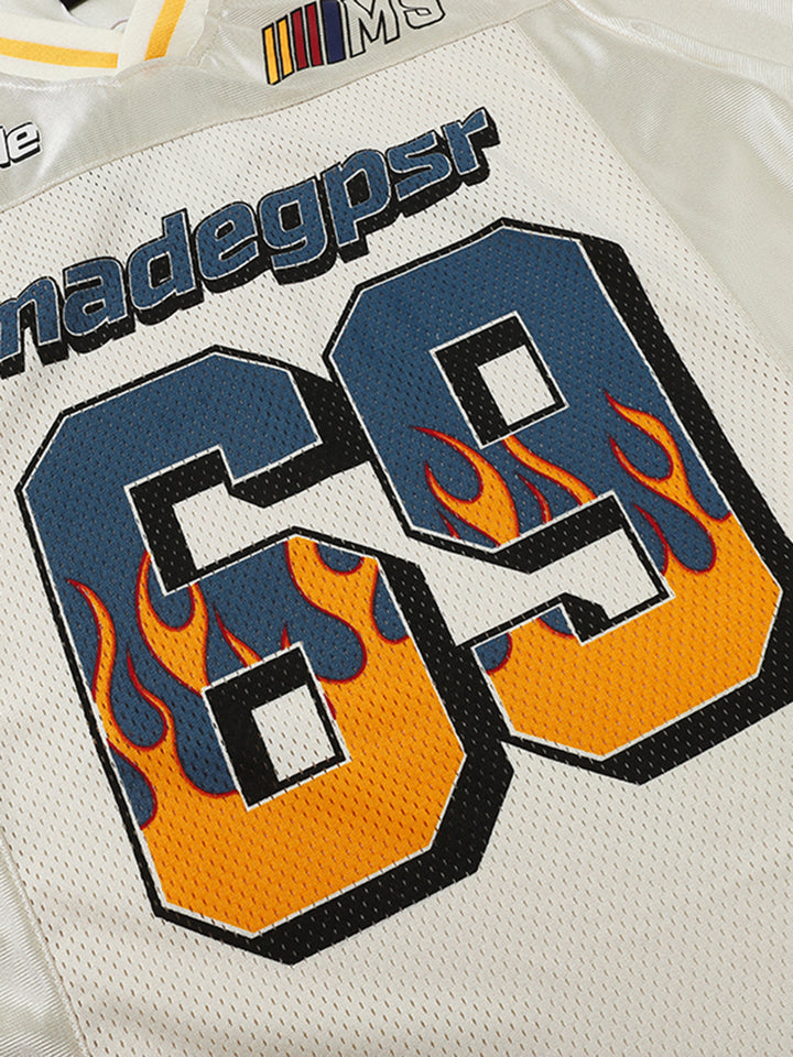 🏁 Race-Inspired Design – Features bold flame number graphics and sporty patch accents, channeling a motorsport-inspired streetwear aesthetic.