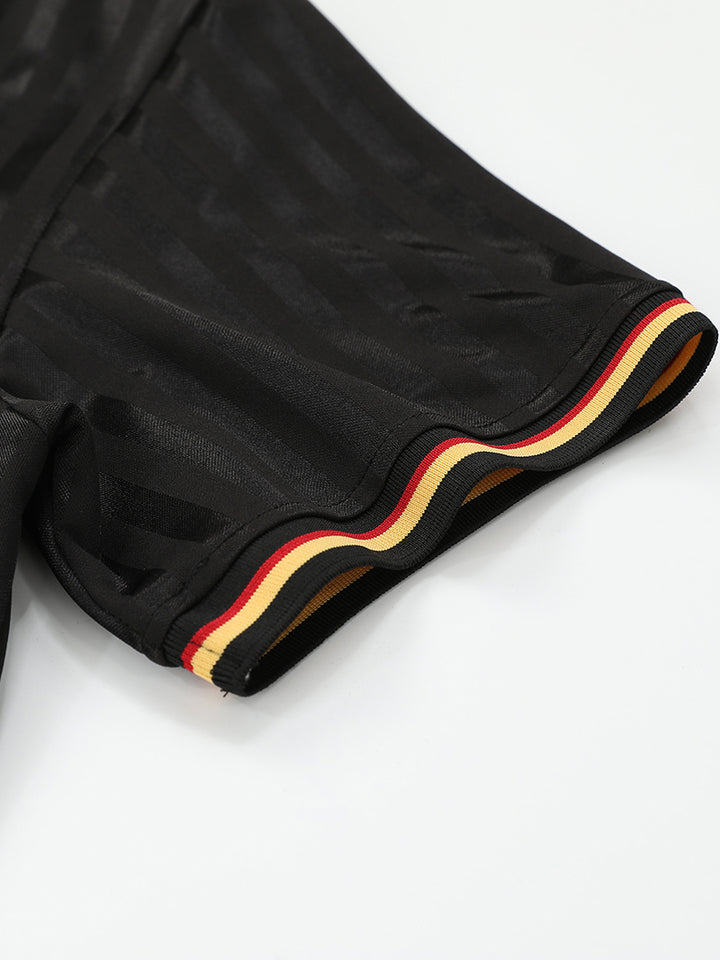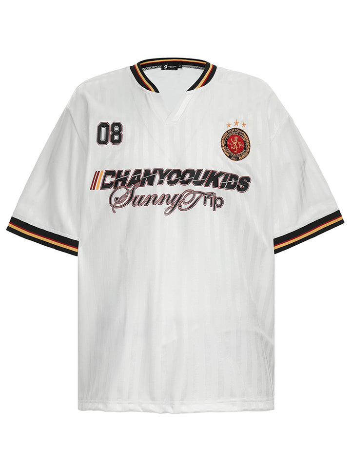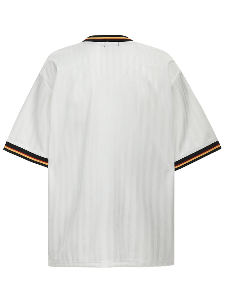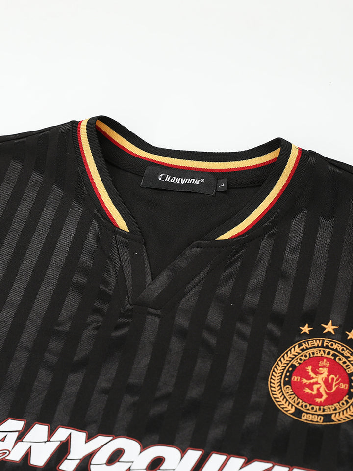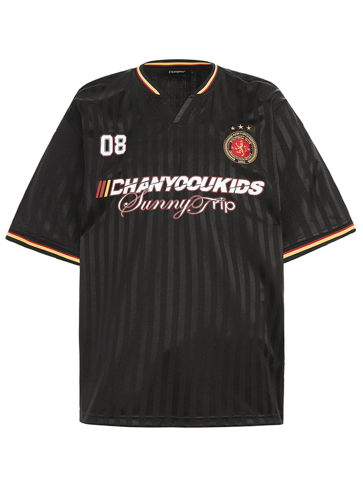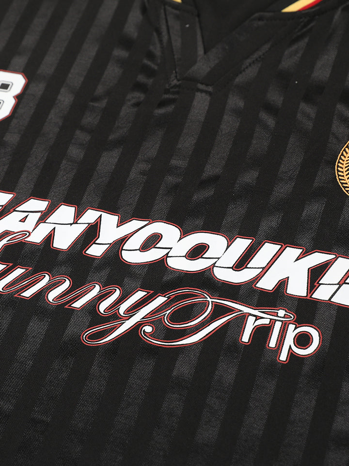 Step up your casual wardrobe with this retro-inspired soccer jersey tee, designed for those who appreciate both athletic aesthetics and streetwear sensibility. Made from 100% polyester, it’s lightweight, breathable, and comfortable for everyday wear. Available in sharp black or clean white, each with bold stripe detailing and relaxed tailoring, this top pairs perfectly with joggers or denim. Whether you're heading to a game, a hangout, or just want to show off your unique style, this jersey tee delivers effortless cool with a sporty twist.