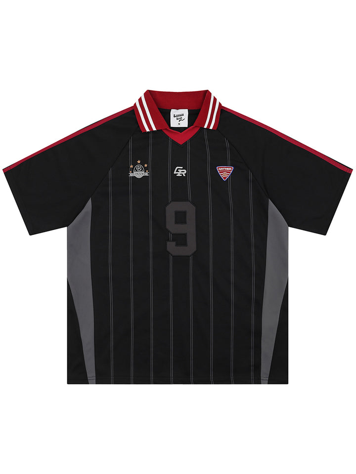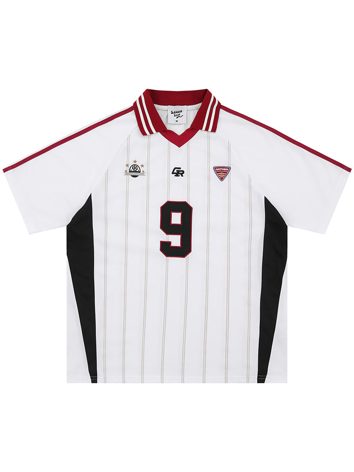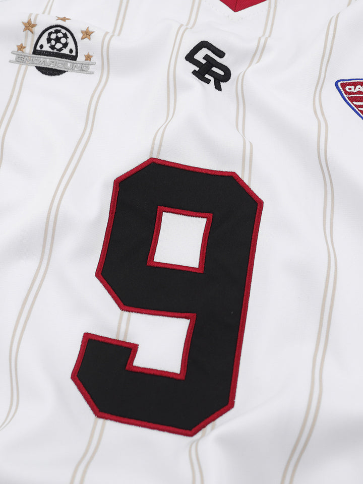 ⚽ Retro Soccer-Inspired Design – Timeless football aesthetic with bold front number and pinstripe detailing for an authentic vintage look.