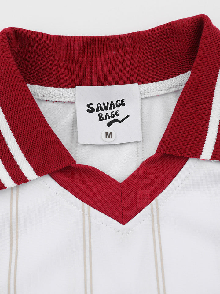 👕 Classic Contrast Collar – Striped collar adds a touch of old-school charm, perfect for sporty and casual wear.