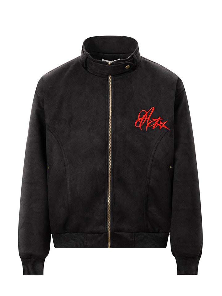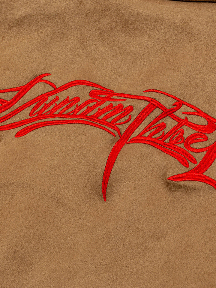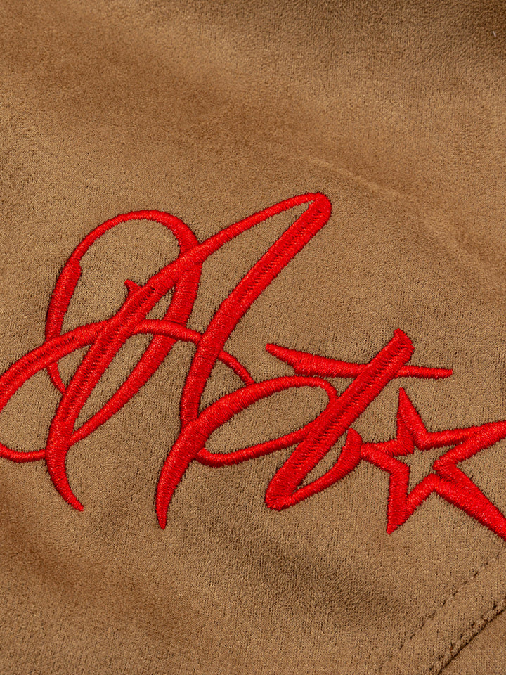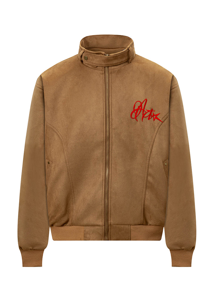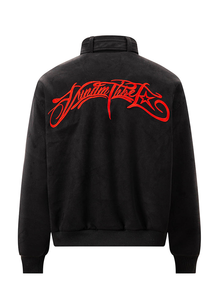 Stay warm and stylish in this men’s faux suede fleece bomber jacket – a perfect blend of comfort and streetwear attitude. The fabric replicates the soft, velvety feel of real deer suede, while providing the easy care of synthetic materials. A full-zip front, stand-up collar with snap closure, and ribbed trim give this piece a classic structure, while bold red embroidery adds urban flair. Pair it with jeans, joggers, or cargos for a sharp look on chilly days. Ideal for fall, winter, or early spring.