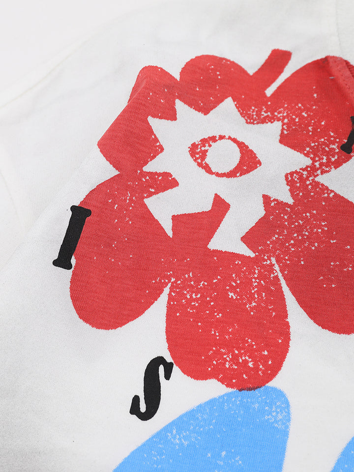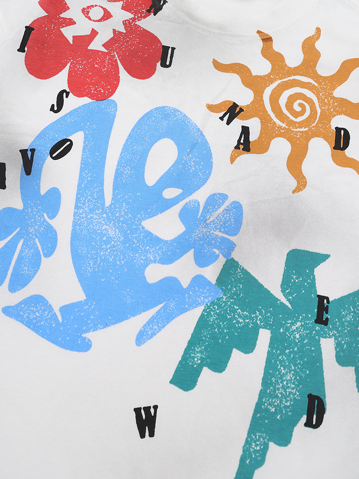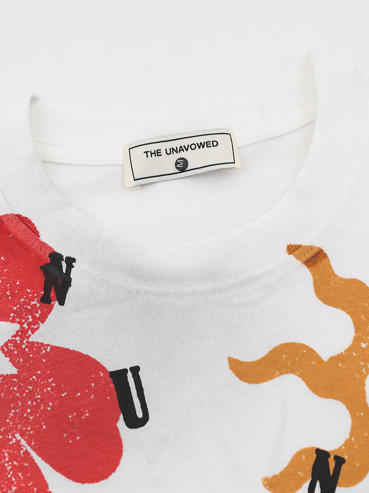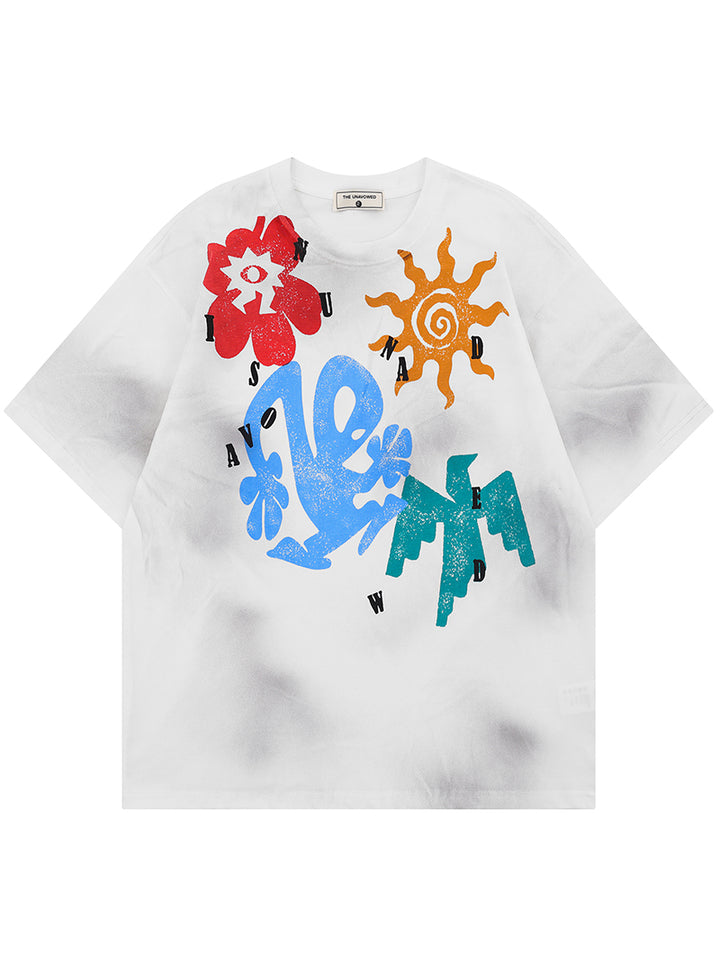 Refresh your everyday style with this oversized graphic tee, crafted with comfort and creativity in mind. The shirt showcases a striking arrangement of abstract shapes and colorful prints, ideal for making a bold fashion statement. Its relaxed fit provides effortless comfort, whether you're lounging at home or styling it with your go-to streetwear. Made from breathable cotton, this T-shirt offers lightweight softness with standout appeal. A versatile piece for those who love to express themselves through bold, creative fashion.