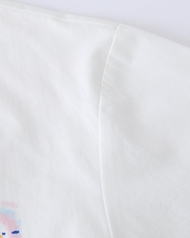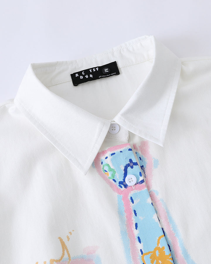 👔 Creative Faux Tie Print – A vibrant printed tie design adds playful charm, making the shirt stand out with artistic flair.
