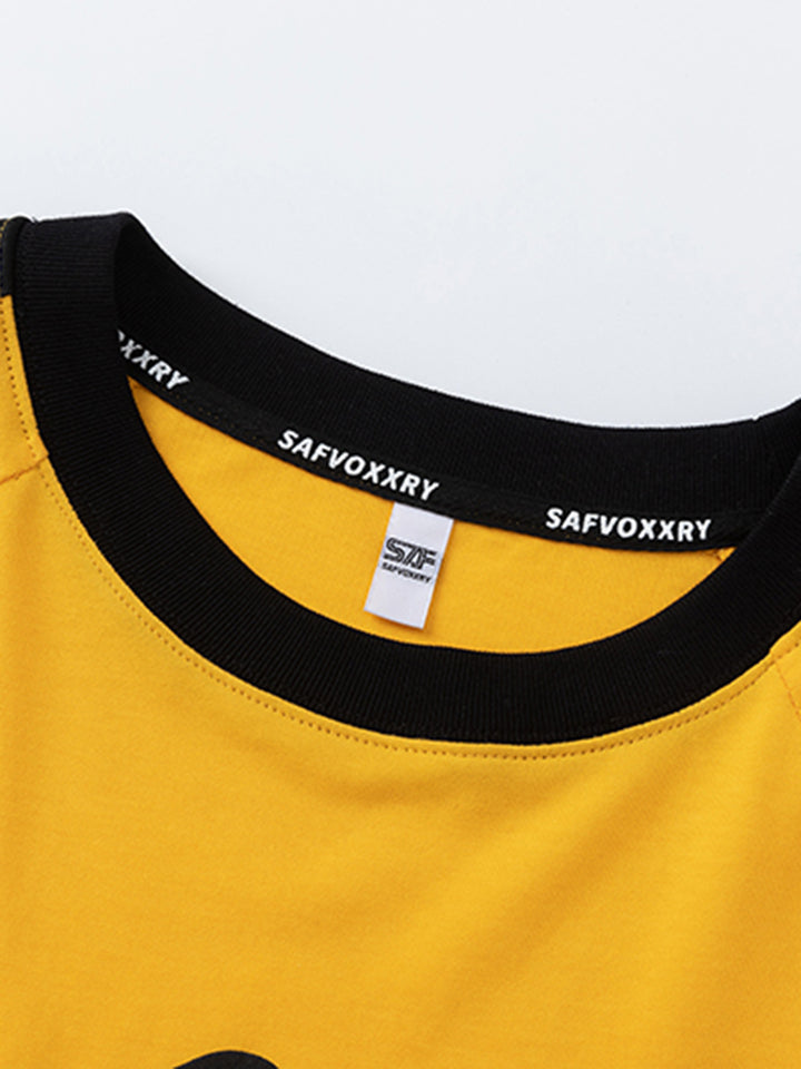 Stylish Streetwear Look: Features bold graphic design with contrasting color details for a modern and energetic appearance.