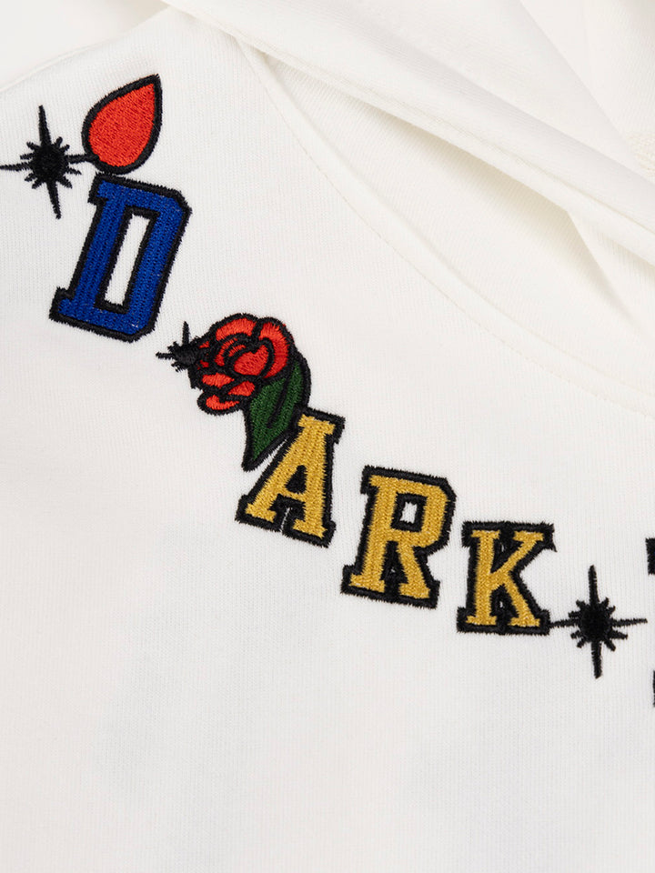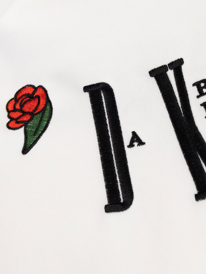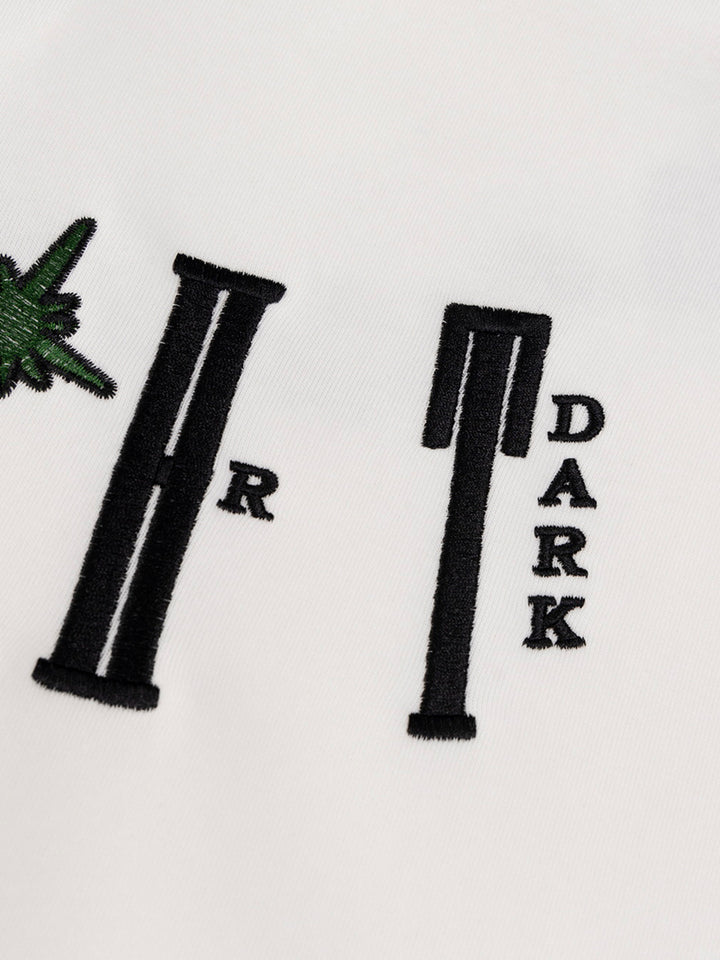 🎨 Bold Graphic Detail – Features a vibrant embroidered graphic along the neckline, combining playful symbols and fonts for a distinctive streetwear edge.