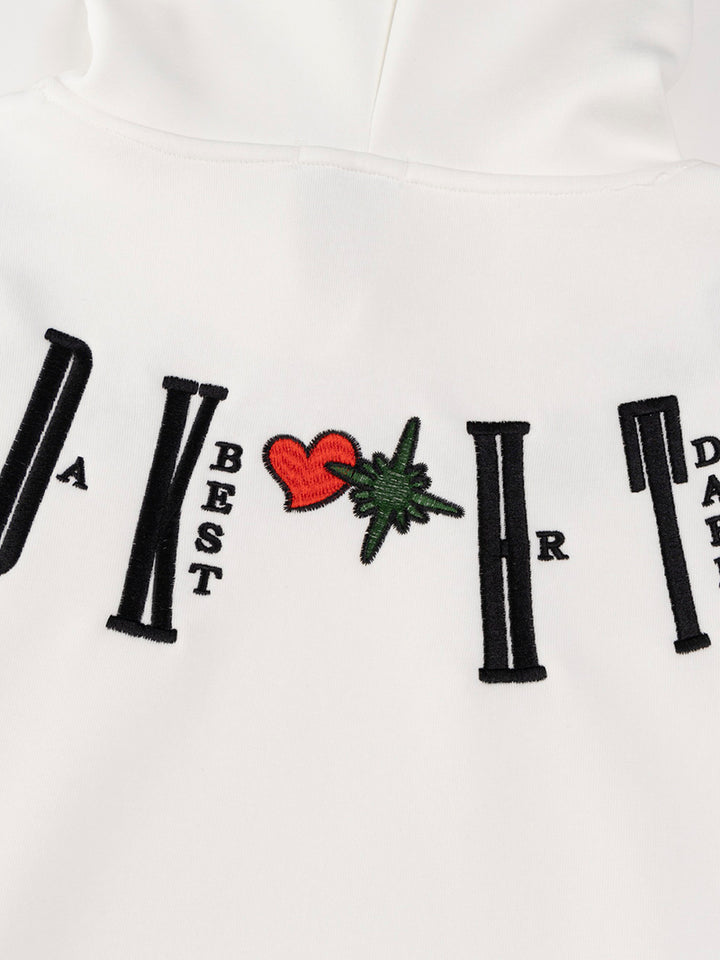 Refresh your wardrobe with this eye-catching embroidered hoodie designed for comfort and individuality. The colorful, mixed-font embroidery across the neckline adds a fun and artistic flair, while the relaxed fit keeps it cozy for everyday wear. Made with a high-quality cotton-polyester blend for the main body and a soft polyester lining, this hoodie is breathable, durable, and perfect for layering. Choose from three stylish shades—Black, White, or Heather Grey—to complete your streetwear rotation with a creative twist.