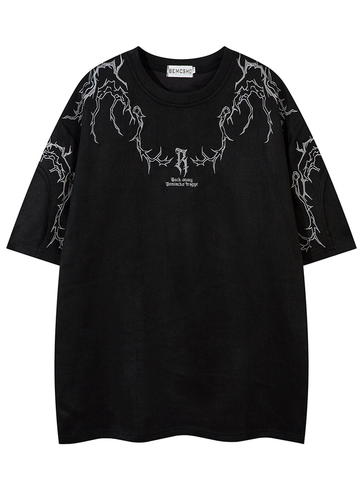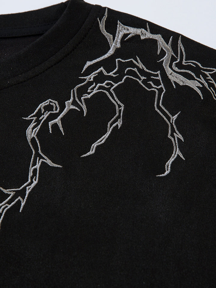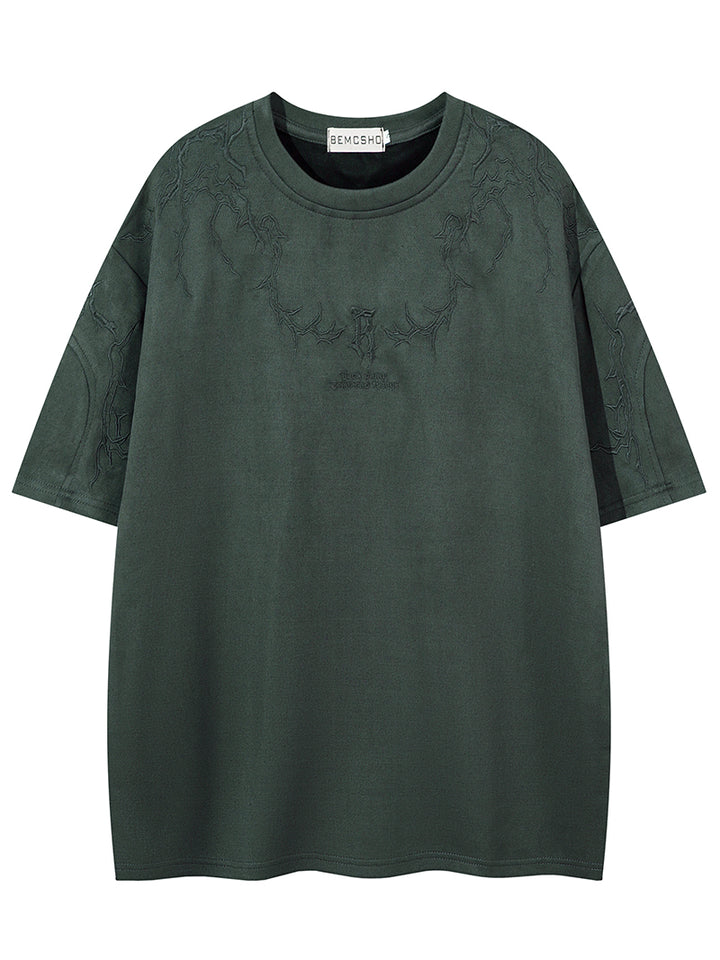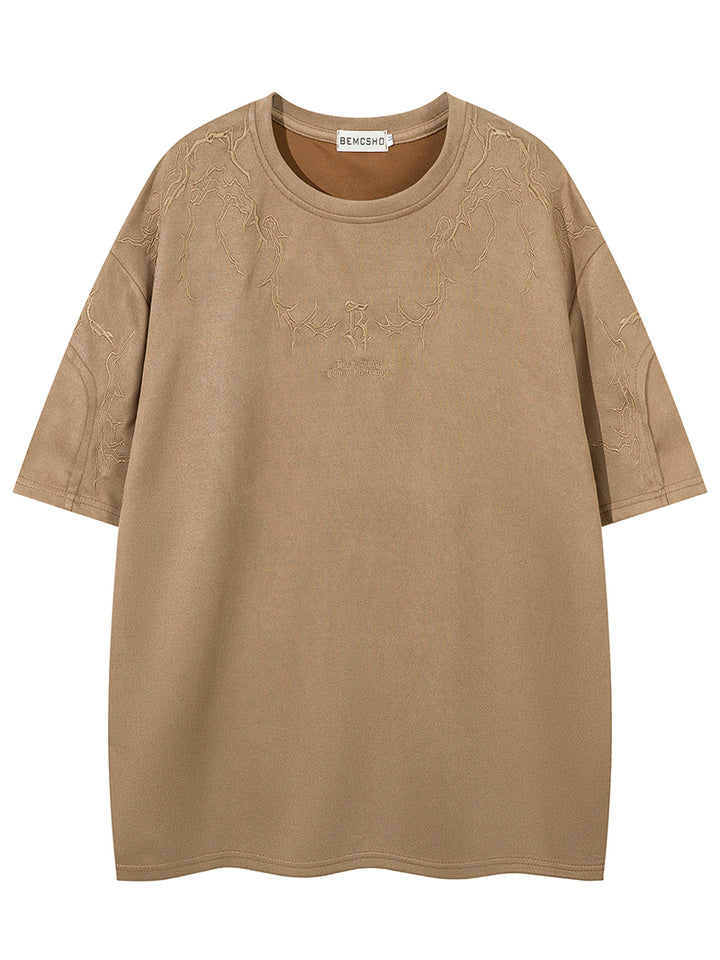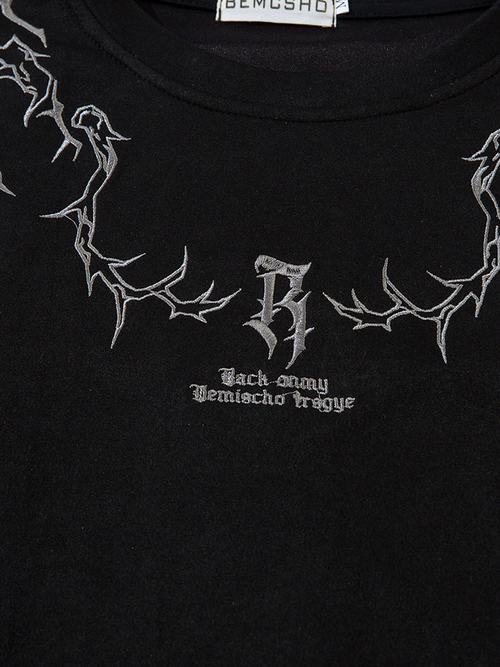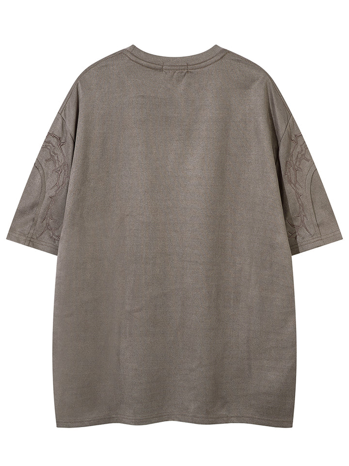 Make a bold statement with this oversized men’s T-shirt, crafted from a luxurious faux suede blend and finished with elevated 3D embroidery. The thorn-inspired graphics wrap around the shoulders and sleeves, delivering visual impact with a textured feel. Combining streetwear style with premium craftsmanship, this tee is soft, stretchy, and perfect for both everyday wear and standout street looks. Available in sizes S to XXL, it’s a versatile piece designed to elevate any modern wardrobe.
