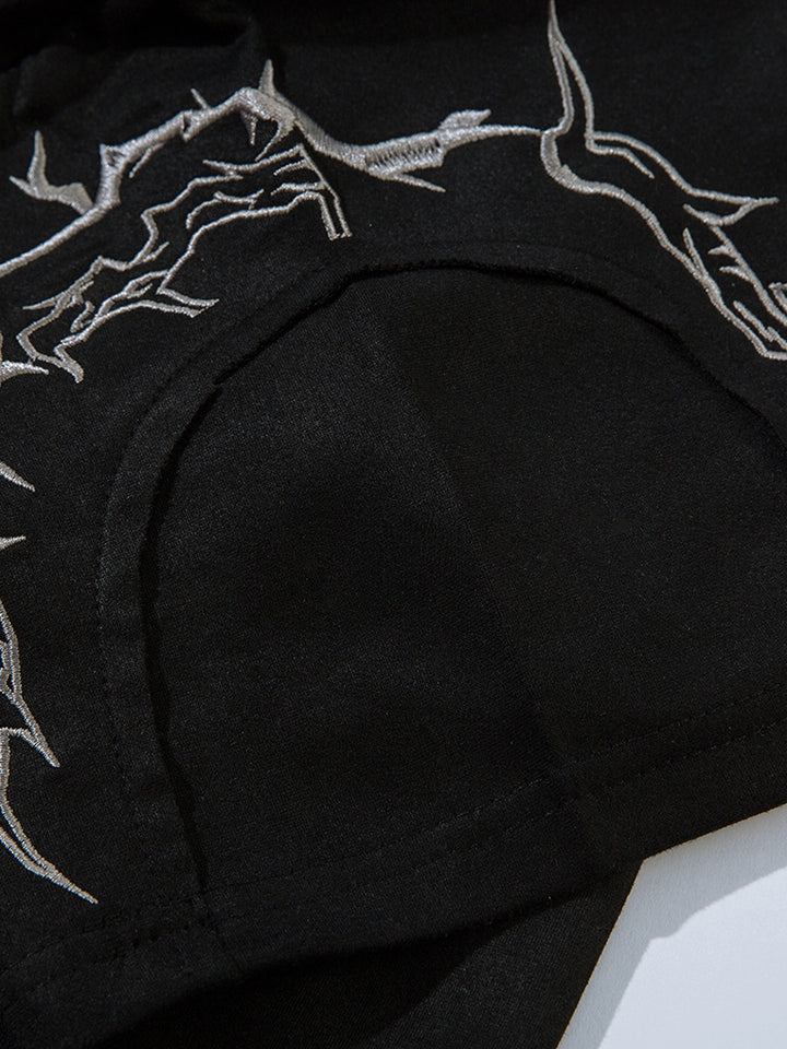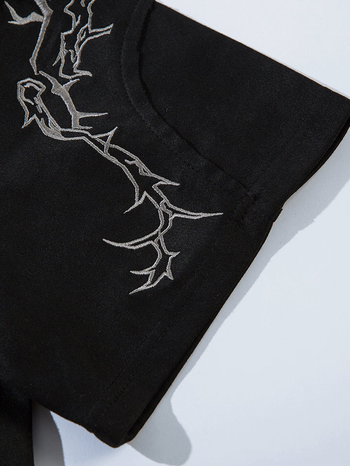 🌿 Striking 3D Embroidery – Features intricately stitched thorn-like graphics across the chest and sleeves, adding a tactile and high-fashion edge to your outfit.