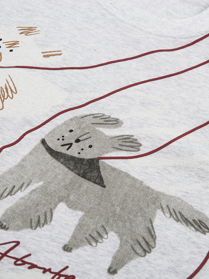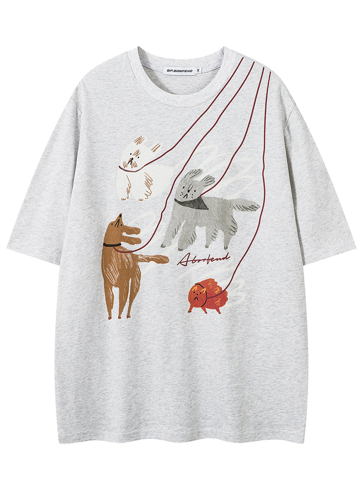 Refresh your wardrobe with this premium heavyweight cotton T-shirt, designed for comfort and creative expression. Featuring a unique hand-drawn dog print, this tee combines playful style with durable construction thanks to its 260g high-density double yarn cotton. The relaxed oversized fit and breathable fabric make it ideal for daily wear, lounging, or pairing with your favorite streetwear essentials. Available in clean white or heather gray, this tee adds a touch of fun to any fashion-forward collection.