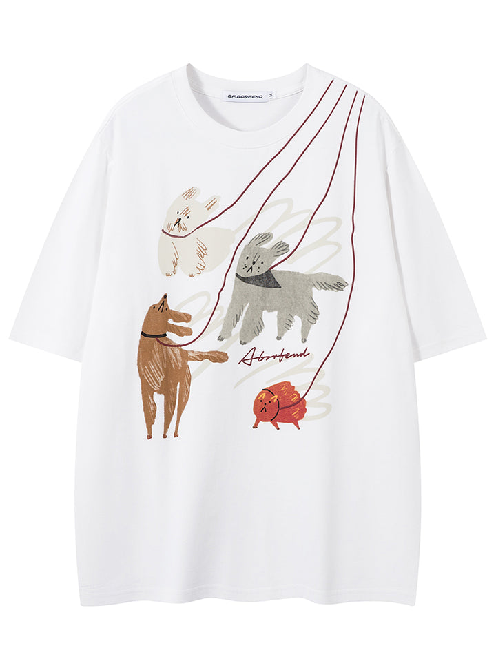 🐾 Artistic Dog Print Design – Showcases a playful, hand-drawn dog illustration that brings charm and individuality to your casual look.