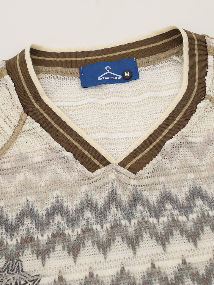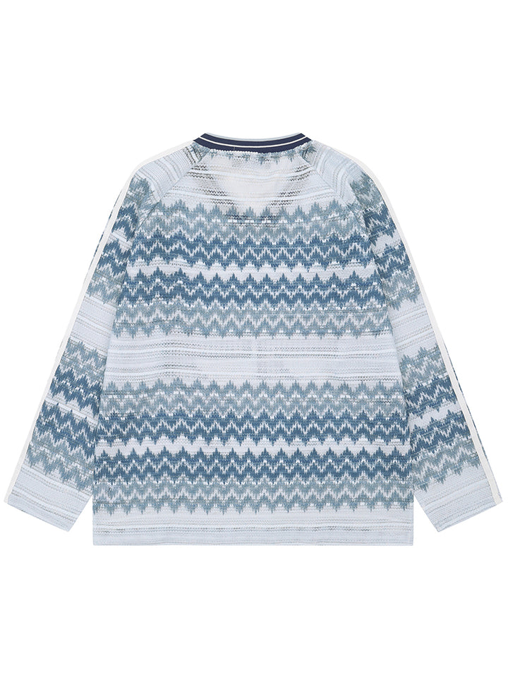 ๐งถ Retro Knit-Inspired Texture โ All-over zigzag jacquard pattern gives the look of classic knitwear with the comfort of a T-shirt.
