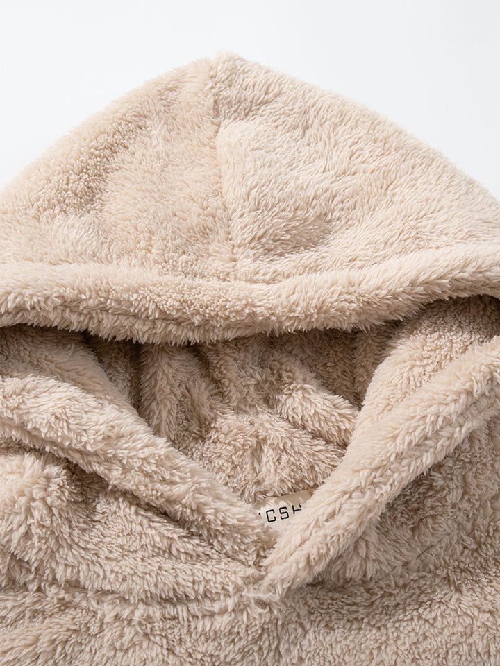 Stay warm and stylish this season with our oversized sherpa fleece hoodie, made from 100% high-quality polyester for long-lasting softness and comfort. Designed with a relaxed streetwear fit, kangaroo pocket, and delicate embroidery, this pullover blends casual style with functional warmth. Available in beige and brown, it’s easy to match with your favorite outfits, whether you’re lounging at home, heading outdoors, or enjoying city streetwear style. A must-have winter essential and a perfect gift idea for anyone who values comfort and fashion.