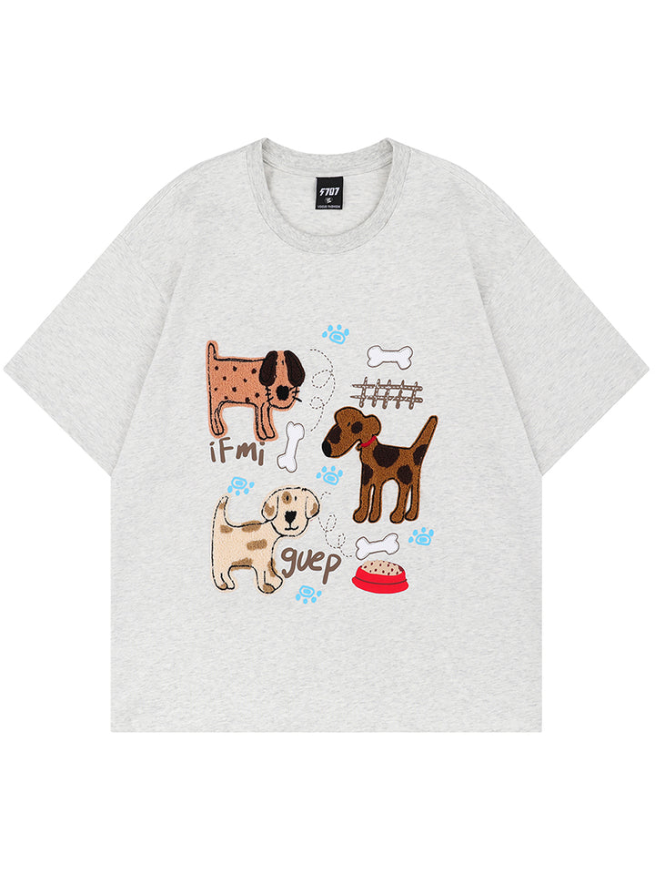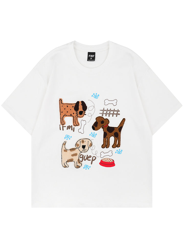 Elevate your casual wardrobe with this standout oversized T-shirt, crafted from 100% cotton for a soft, breathable feel. Featuring playful, textured towel embroidery dog graphics, this tee adds a touch of handcrafted charm to your style. With its relaxed fit and vibrant colors, it's perfect for everyday wear, lounging, or pairing with your favorite streetwear pieces. Whether you're out with friends or just chilling at home, this shirt delivers comfort and personality in every stitch.