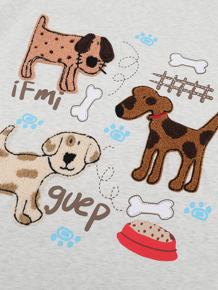 🦴 Creative Towel Embroidery Dog Graphic – Features a playful, textured towel embroidery dog illustration, adding a unique, hand-crafted touch to your outfit.