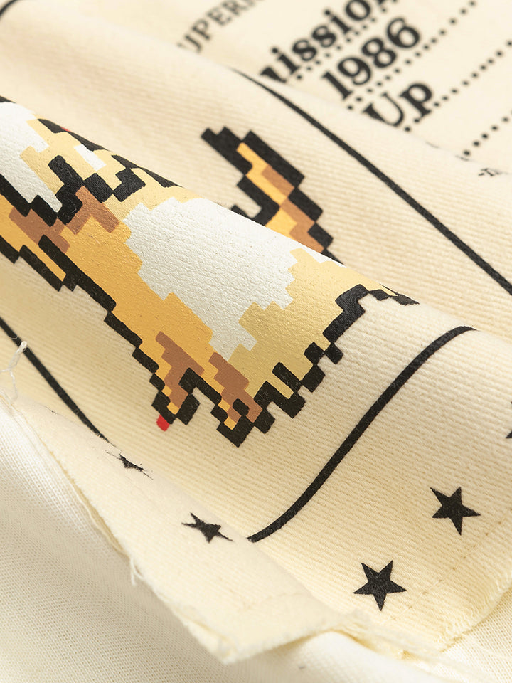 - Creative Patchwork Design: Features a standout stitched patch with a retro pixel-style dog print.