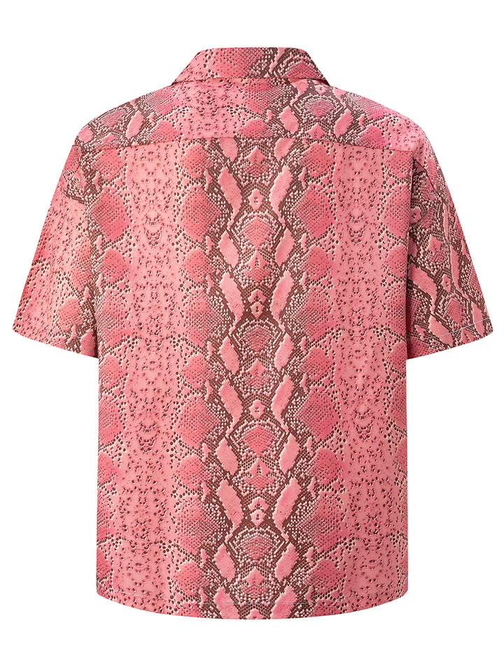 Turn heads with this bold and stylish short sleeve shirt, showcasing a vivid snake print in both classic black and vibrant pink. Designed with a relaxed fit and made from 100% polyester, it offers lightweight comfort and durability for everyday wear. Perfect for streetwear lovers, music festival goers, or anyone who enjoys bold statement pieces, this shirt delivers effortless cool with a wild twist. An ideal addition to any modern, expressive wardrobe.