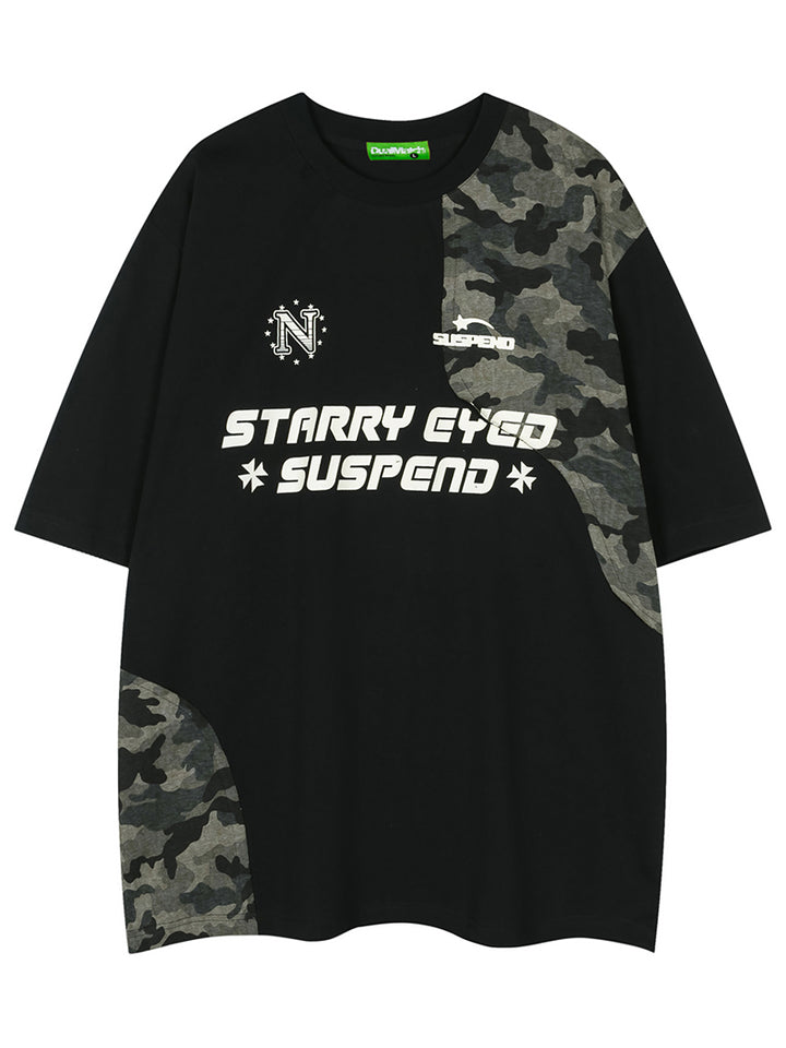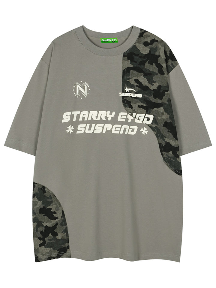 Refresh your streetwear lineup with this bold oversized T-shirt, designed with creative patchwork camo details and printed accents. Made from a soft and breathable cotton-polyester blend, the 250g cool-touch jersey fabric offers premium comfort for all-day wear. Its relaxed silhouette makes it ideal for lounging, daily outings, or pairing with joggers and sneakers for a trendy urban vibe. Available in sizes S to XL, this tee combines comfort, style, and streetwear appeal in one standout piece.