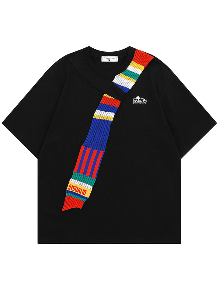 Elevate your urban wardrobe with this standout oversized t-shirt featuring a one-of-a-kind knitted scarf-style patchwork design. Blending modern streetwear vibes with innovative texture contrast, this shirt is perfect for those who want to break away from the ordinary. The breathable cotton blend and loose fit ensure comfort in any season, while the asymmetrical knitted element adds depth and flair to your look. Whether you're exploring the city or hitting up a casual hangout, this tee delivers effortless style with an edge.