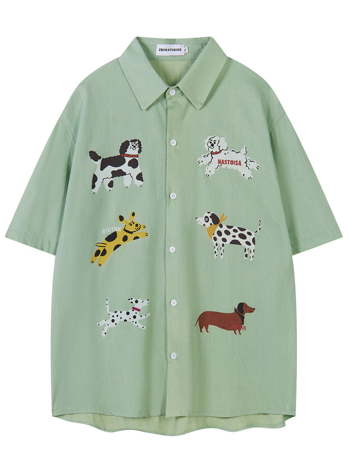 With its loose fit and versatile design, this shirt works for both men and women and can be styled casually with jeans, shorts, or even tucked into skirts for a more laid-back look. The fun dog prints on the front make it a statement piece that's perfect for dog lovers and anyone who enjoys a quirky, artistic style.