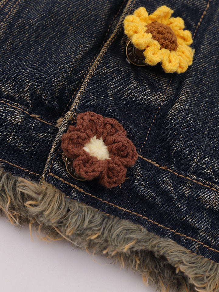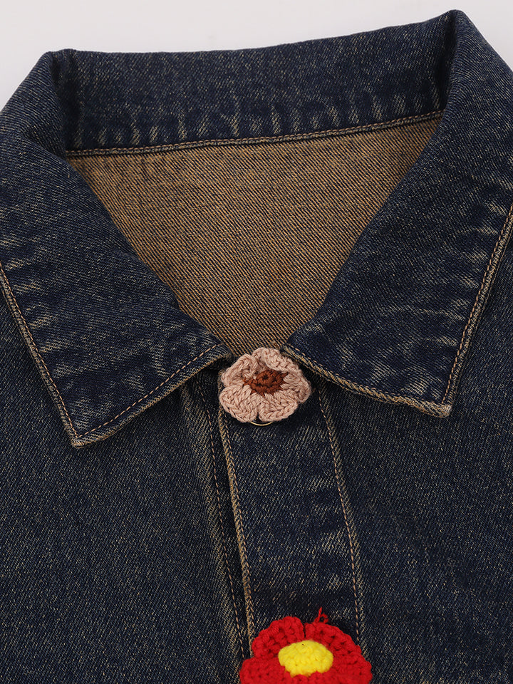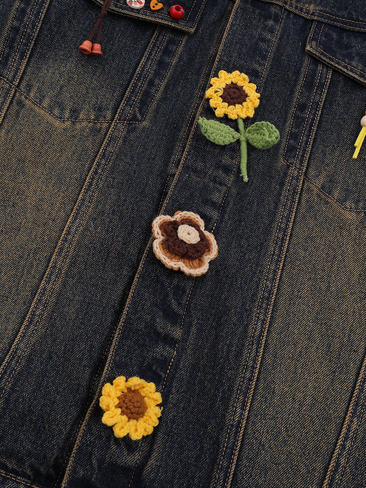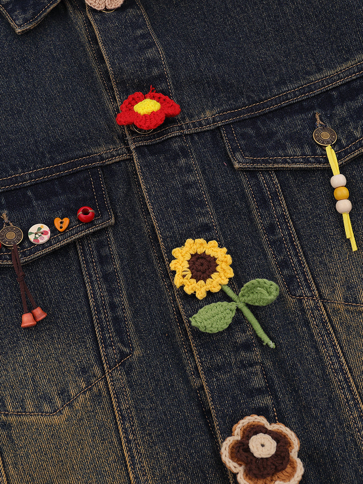 🌸 Handmade Crochet Details – Adorned with vibrant crocheted flowers and fun appliqués, this jacket brings a playful and artistic touch to your outfit.