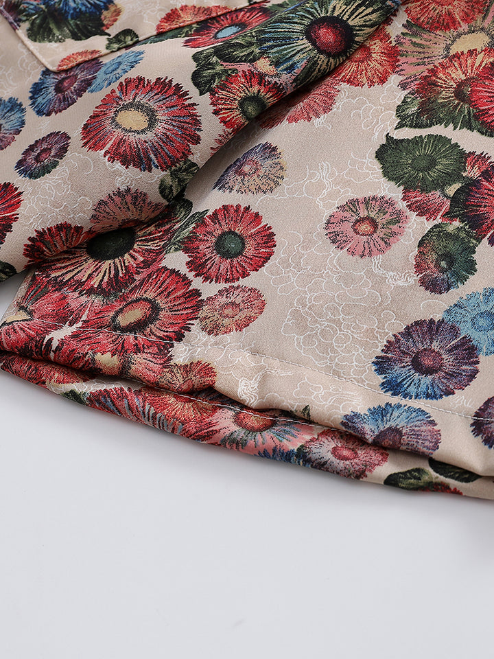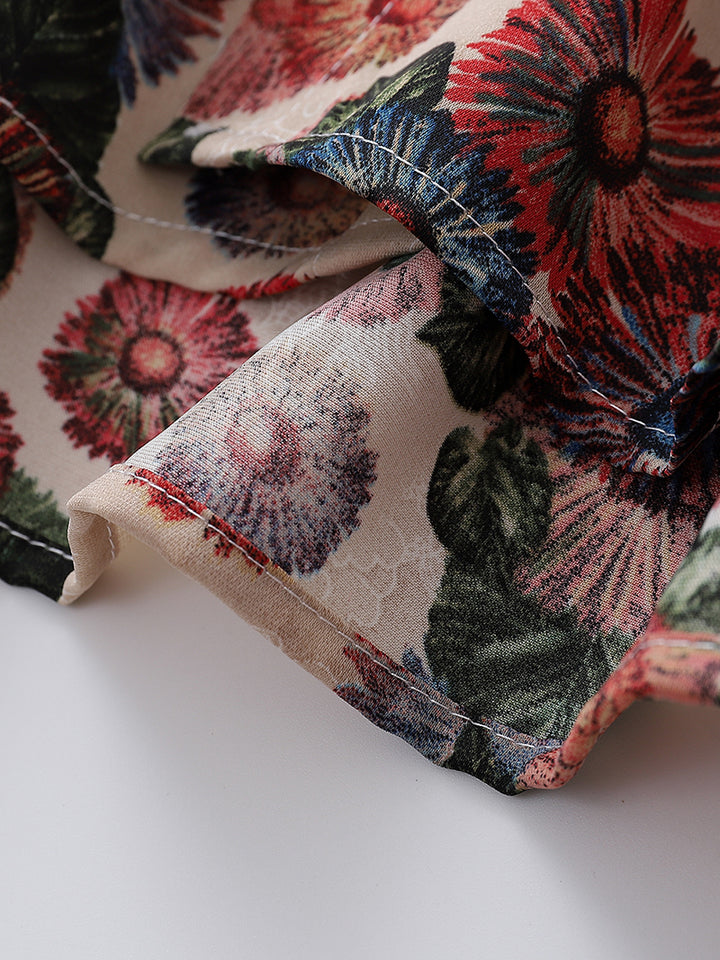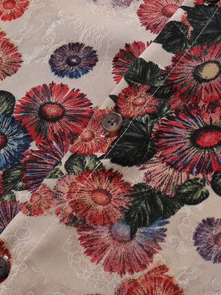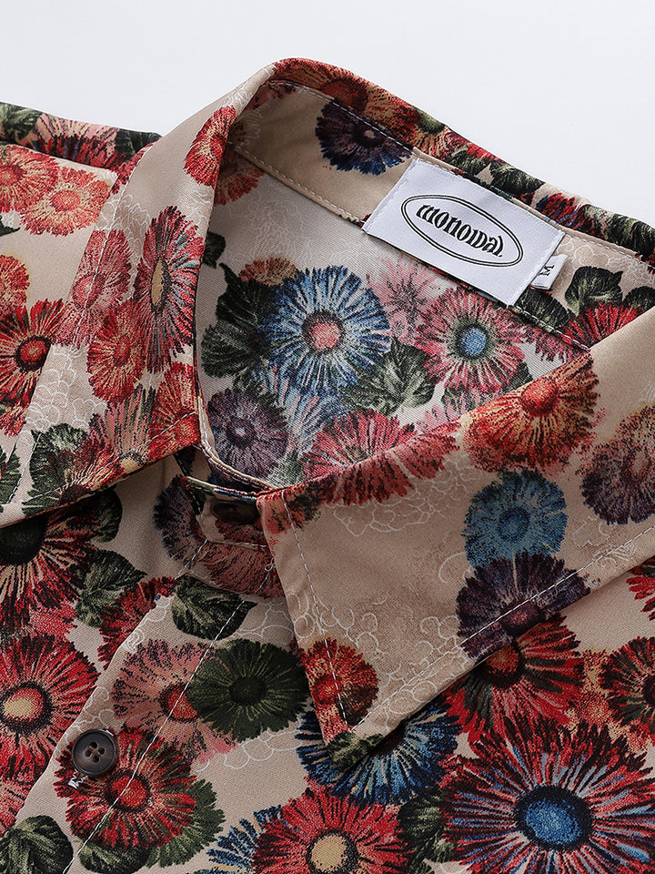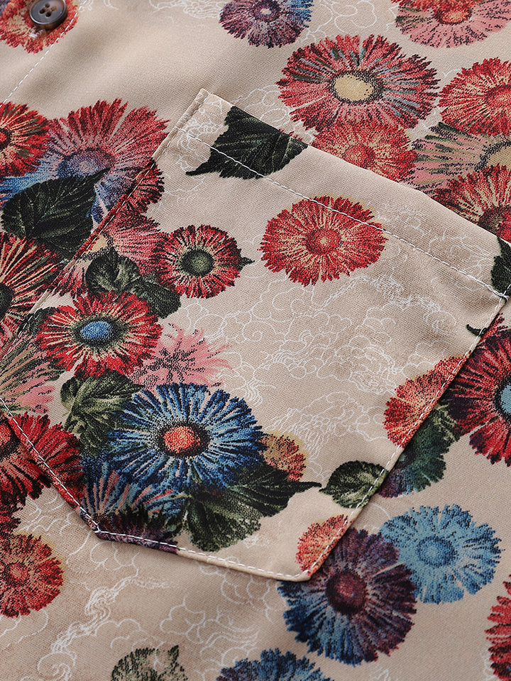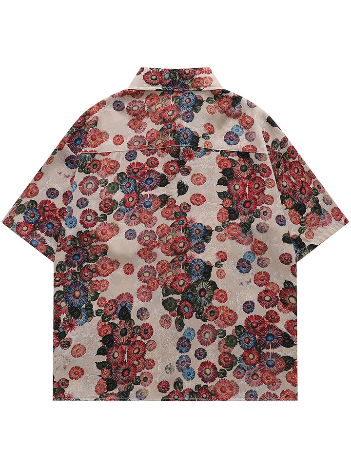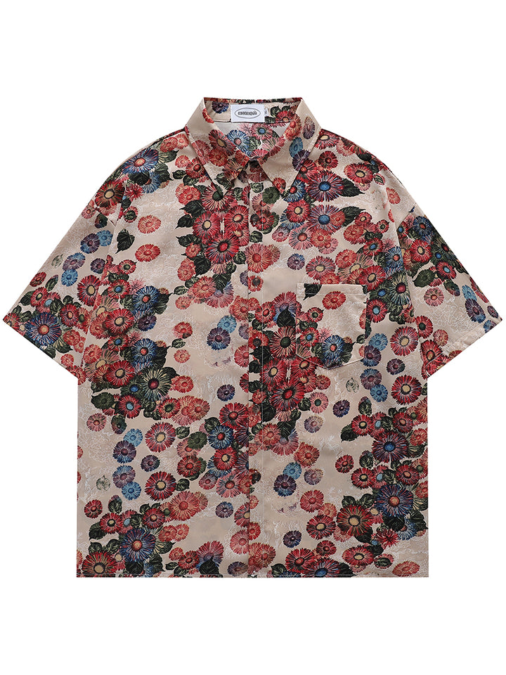 🌸 Vibrant Floral Print – Eye-catching all-over flower pattern in rich, vintage tones makes this shirt a bold and stylish summer essential.