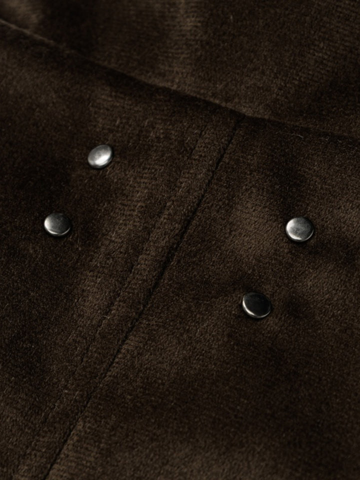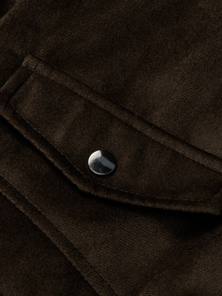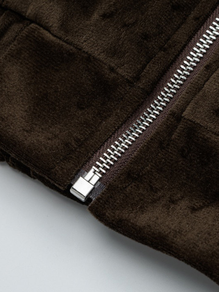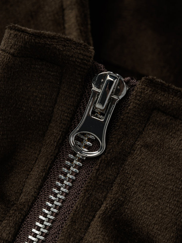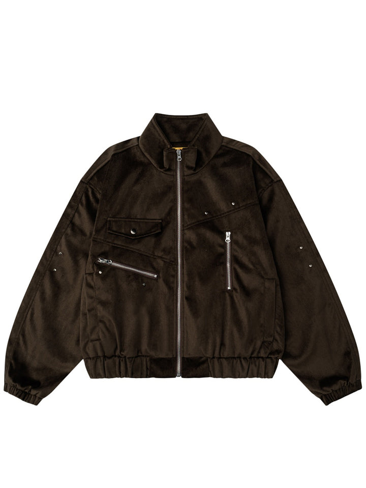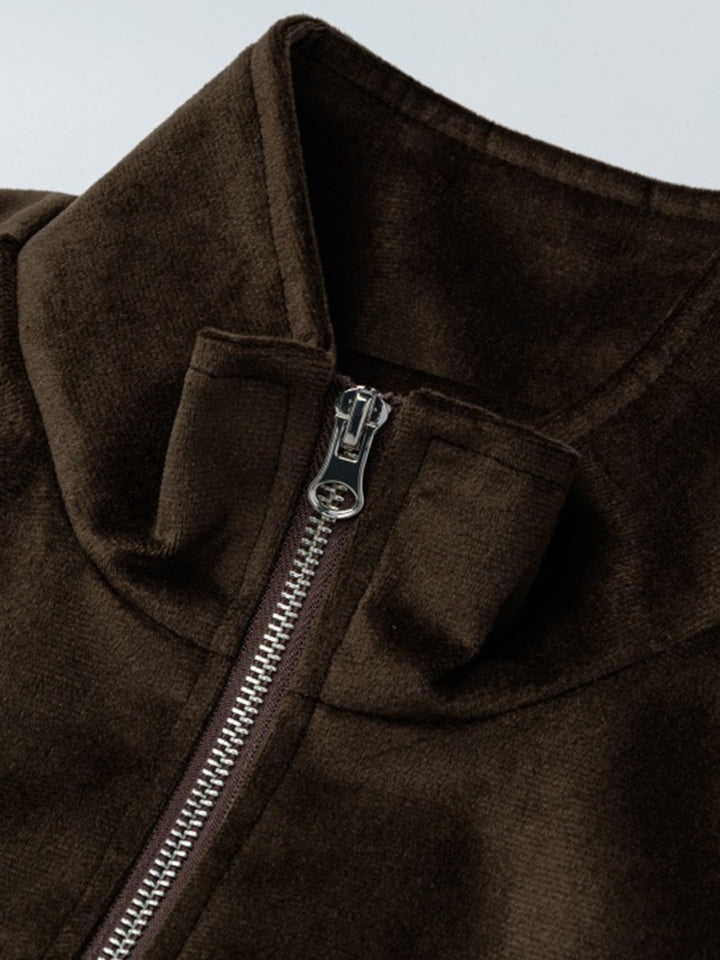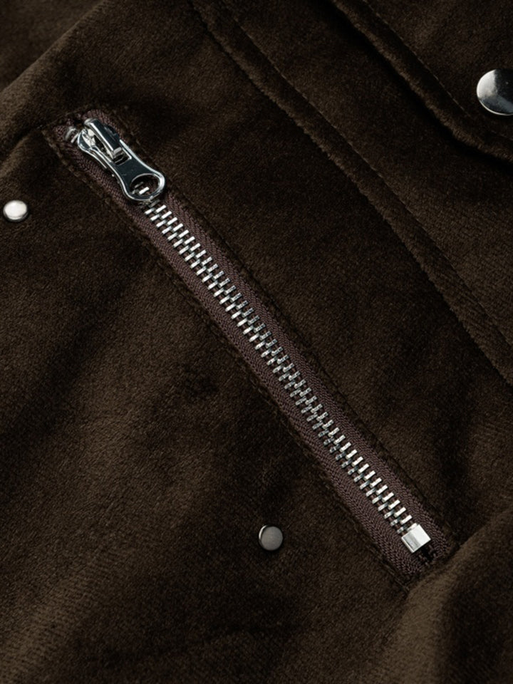Upgrade your wardrobe with this men’s velvet stand collar jacket, crafted from 100% polyester for a smooth and comfortable feel. Designed with a modern touch, it features a sleek zipper closure, asymmetric pocket layout, and refined stud detailing for a fashionable edge. The jacket comes in two versatile colors: Black and Brown, making it easy to pair with different outfits. Available in sizes M, L, and XL, it offers a relaxed yet stylish fit that works for casual outings, evening events, or daily wear. A perfect blend of comfort and fashion, this jacket also makes a thoughtful gift option for men who value style.