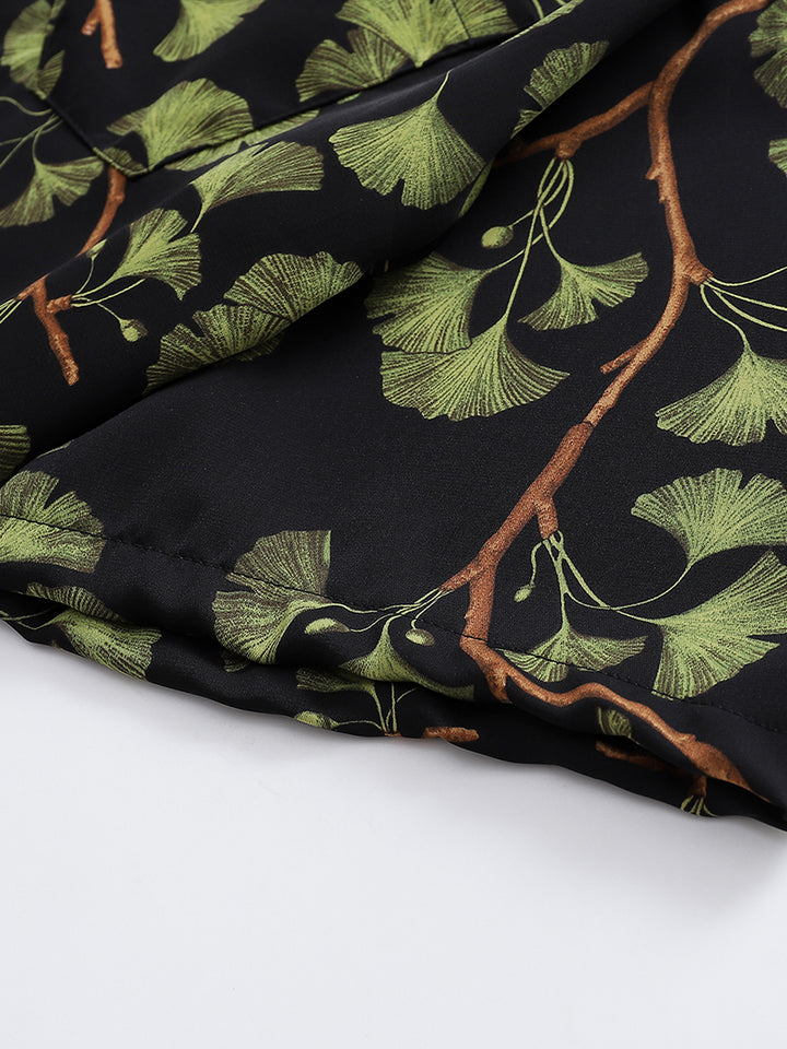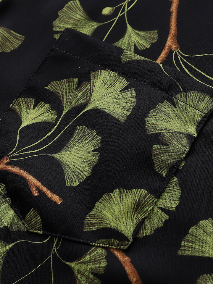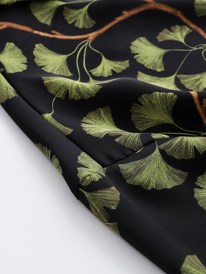 🌿 Nature-Inspired Print – Features a striking botanical design with leafy branches, adding a fresh, artistic edge to your outfit.