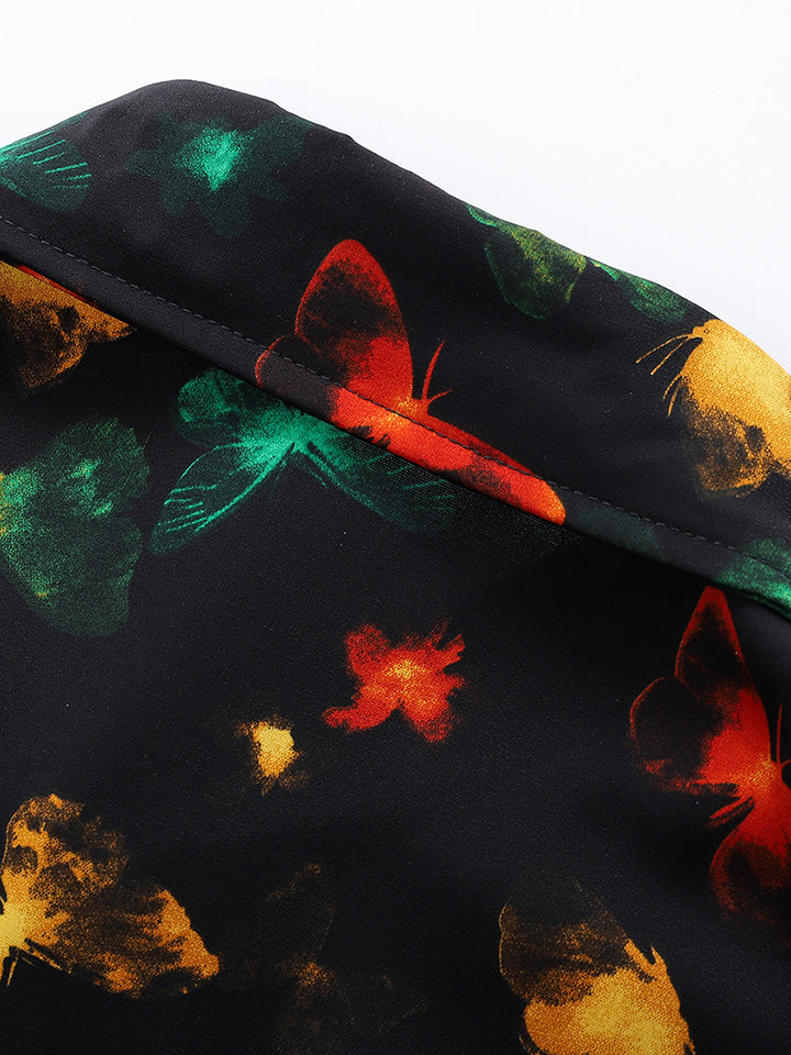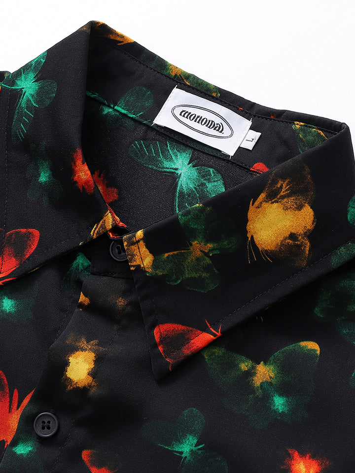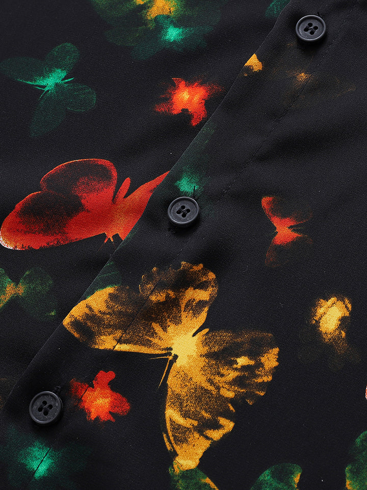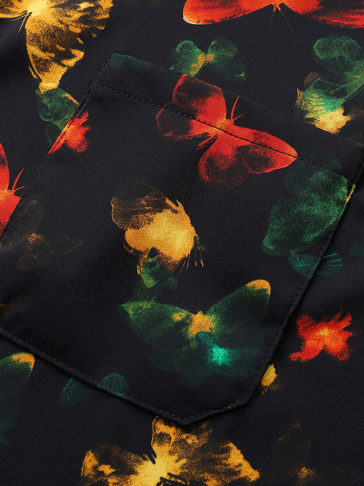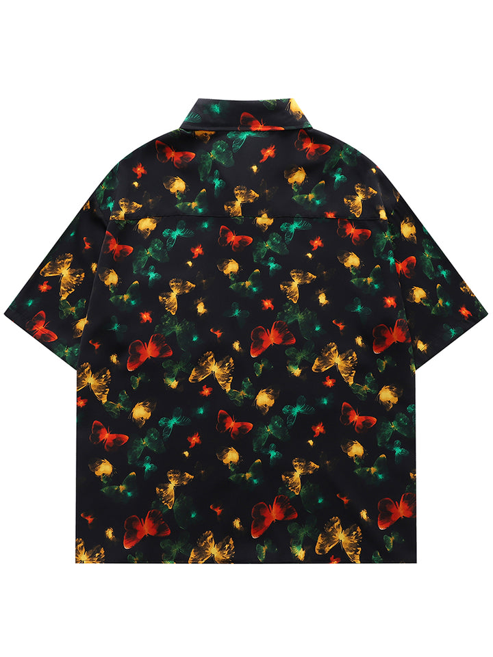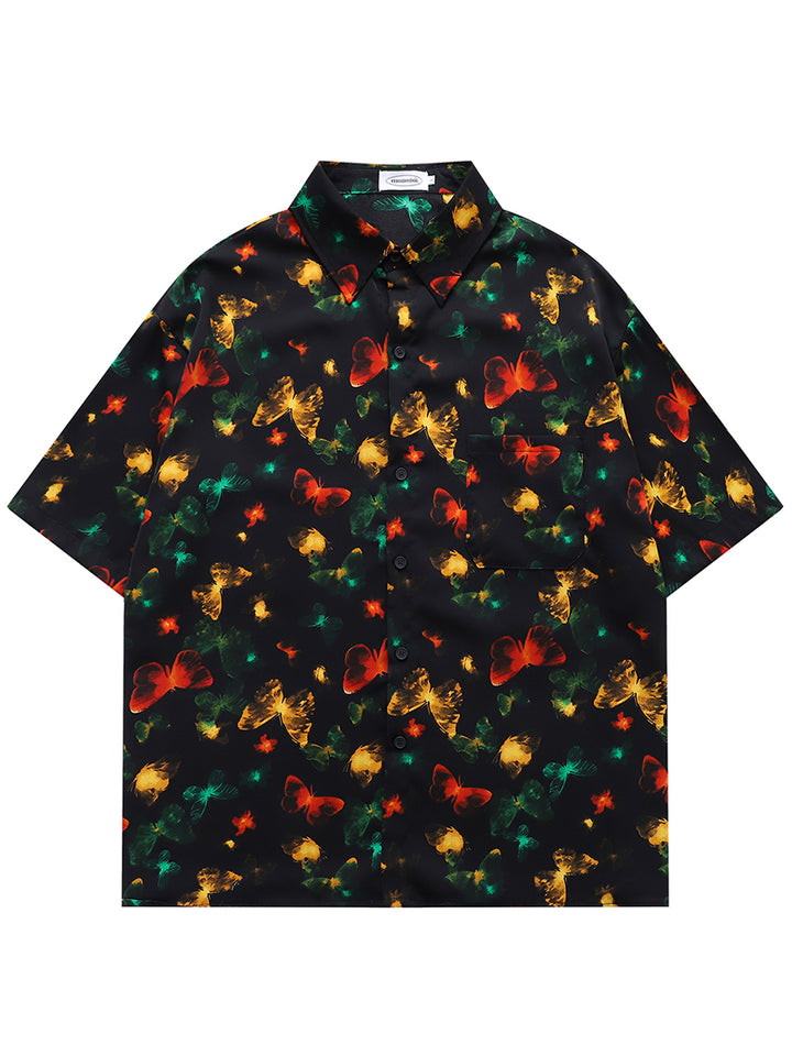 Refresh your wardrobe with this striking butterfly print short sleeve shirt. Crafted from 100% polyester, it offers a soft, lightweight feel that's ideal for warm-weather styling. The relaxed, oversized fit provides maximum comfort and a fashionable silhouette that works well for everyday wear, festivals, or casual events. With its vibrant allover butterfly pattern, this shirt is a true statement piece that blends artistic design with laid-back cool. Available in sizes S to XL, itโs a must-have addition for those who love unique and expressive fashion.