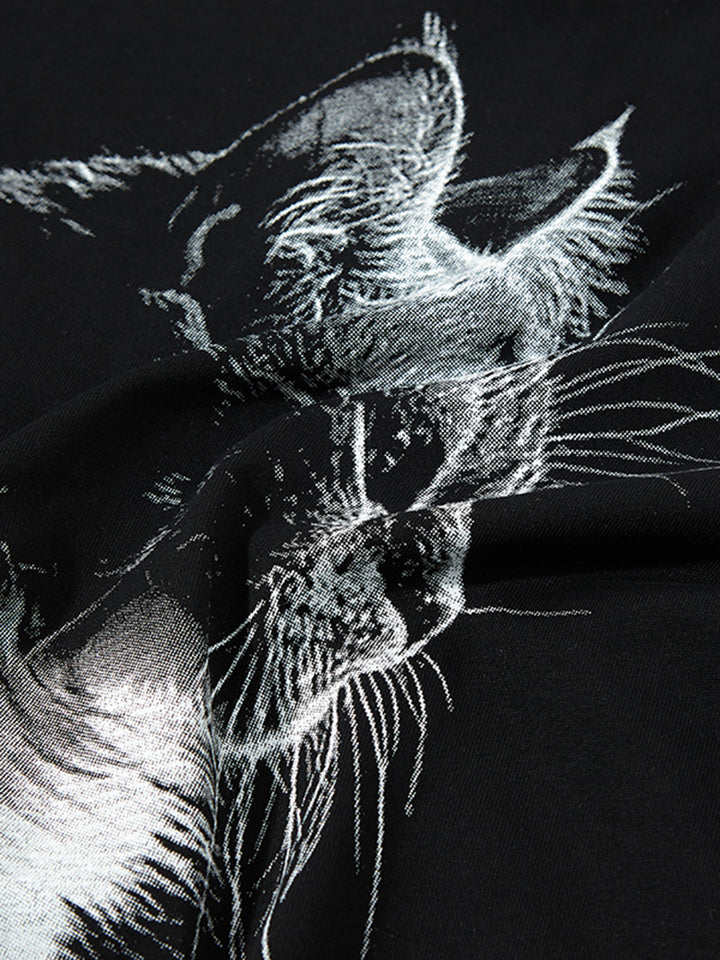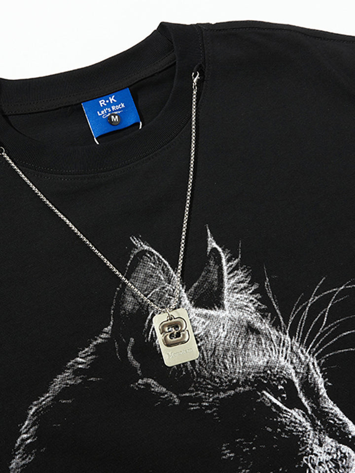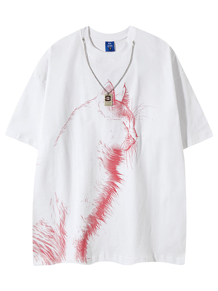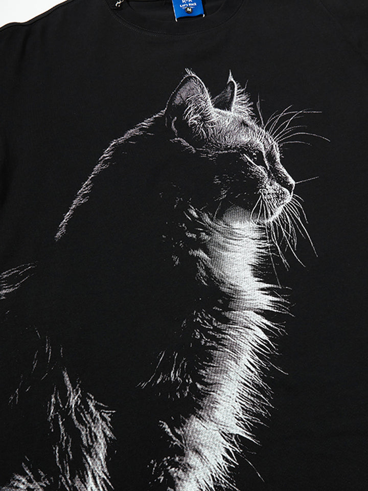 Elevate your wardrobe with this eye-catching oversized T-shirt featuring a beautifully detailed cat illustration. With its minimalist monochrome design and soft, breathable cotton fabric, this tee blends comfort with style for everyday wear or casual outings. The relaxed fit ensures all-day ease while adding a modern edge to your streetwear collection. Whether you're lounging, layering, or heading out, this tee is a versatile and artistic addition to any fashion-forward wardrobe.
