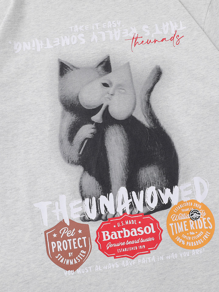 This stylish oversized graphic t-shirt combines a relaxed fit with bold, eye-catching designs. Featuring an artistic and abstract graphic of two stylized animals in a warm embrace, this shirt promotes a laid-back attitude with the phrase "Take it easy, that’s really something." It includes retro-inspired elements, including creative branding labels that add a vintage flair.
