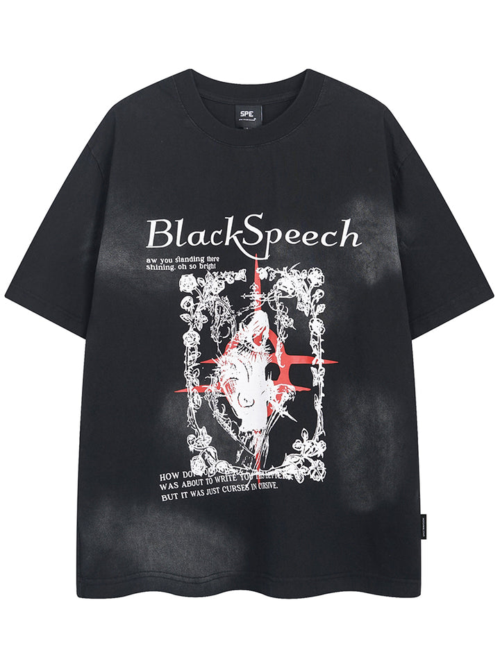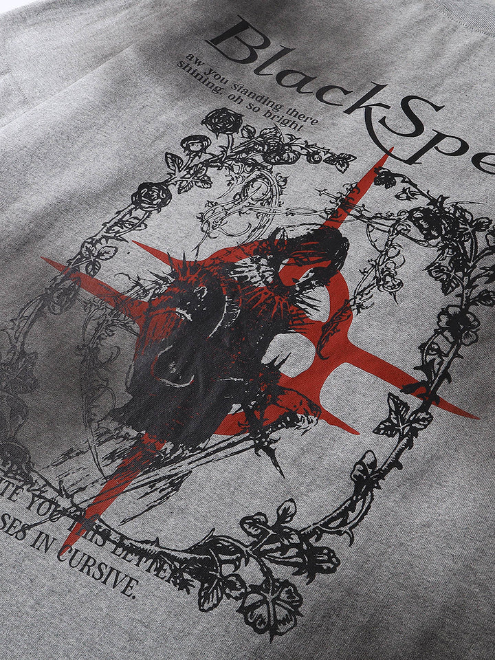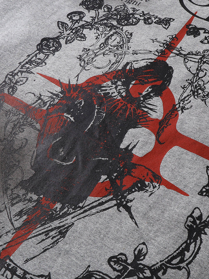 Artistic Gothic Design: Features a bold central graphic with medieval and floral elements, perfect for fans of alternative fashion.