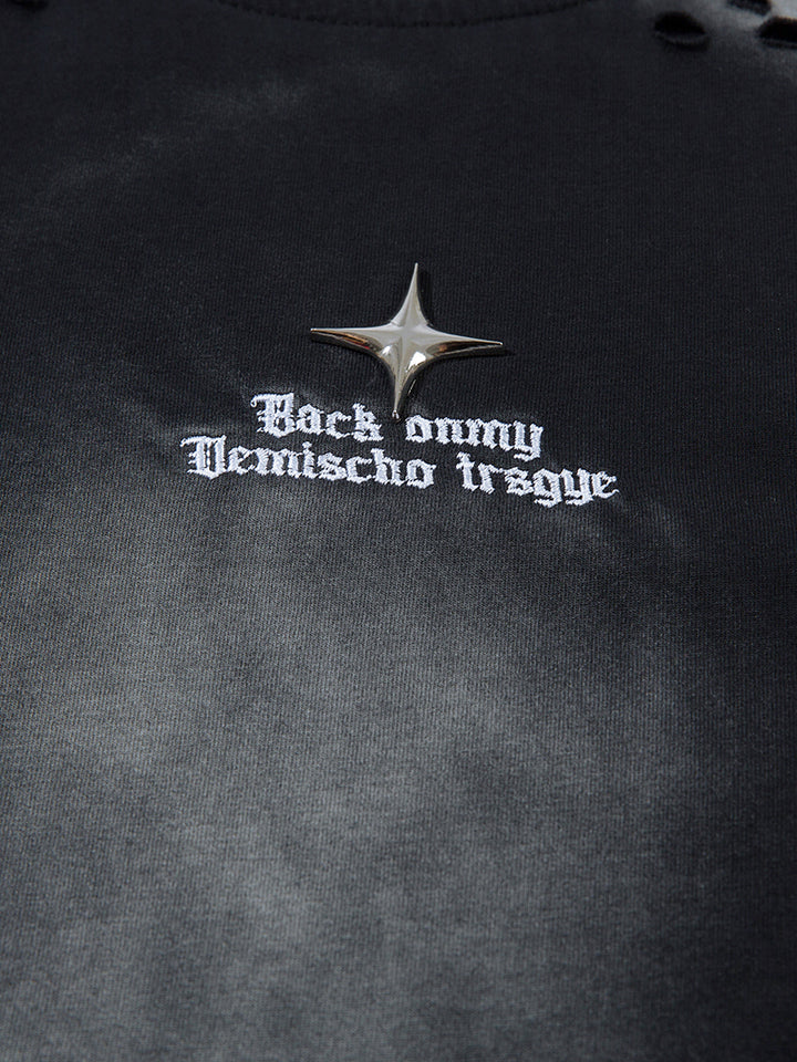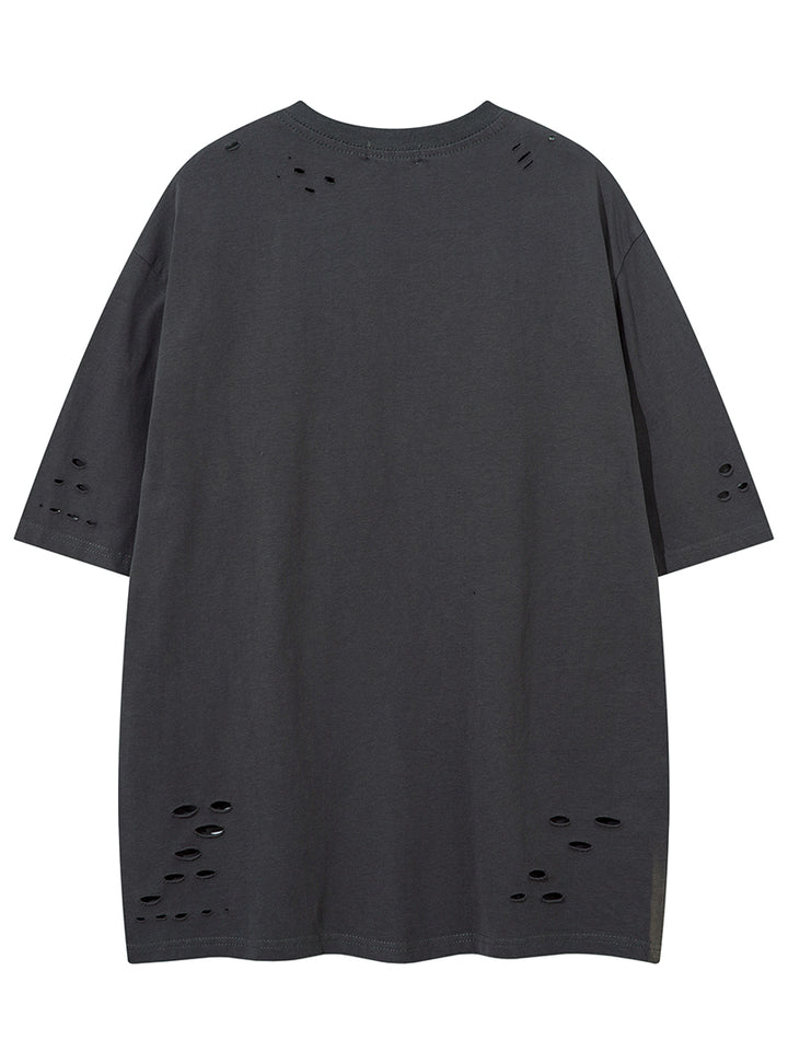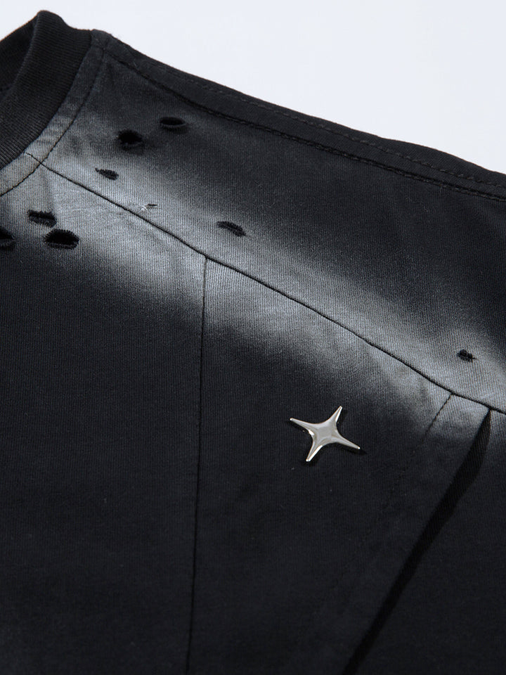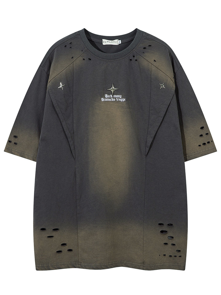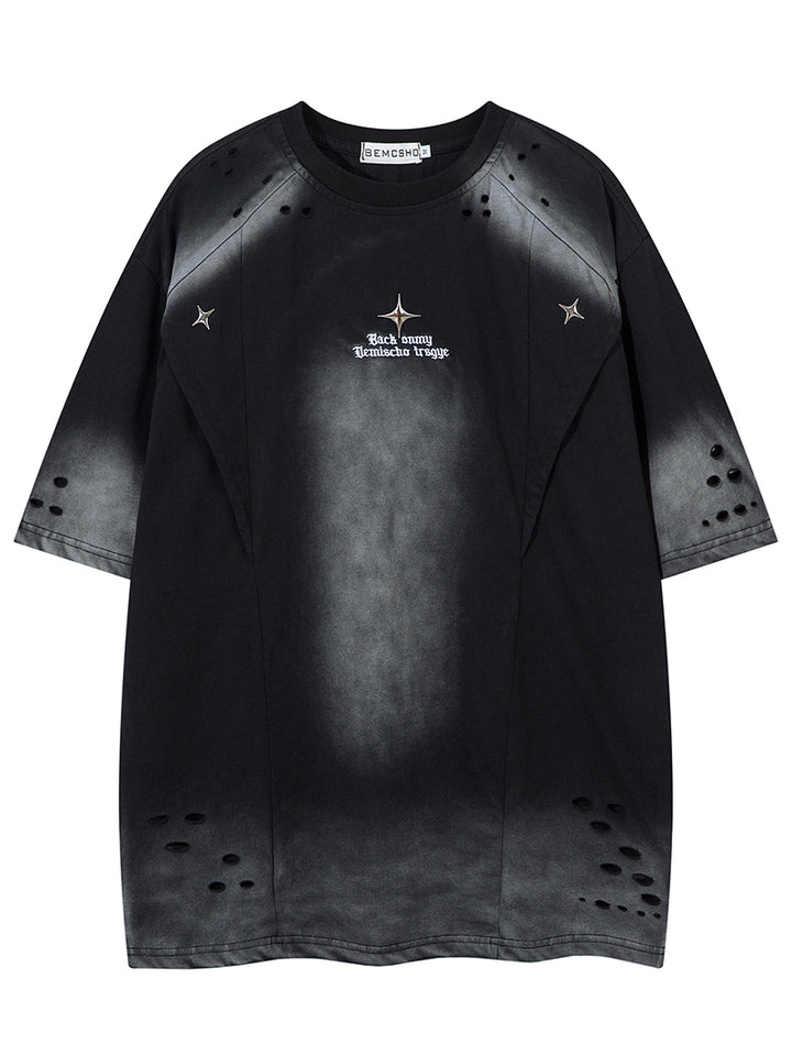 Upgrade your streetwear game with this standout oversized T-shirt, crafted from 100% pure cotton for maximum comfort and breathability. Designed with a vintage washed finish and distressed hole detailing, this tee delivers a raw, edgy aesthetic that captures the essence of modern grunge fashion. Star patches on the front add a unique visual twist, while the relaxed fit ensures ease of movement and all-day wear. Perfect for casual outfits, layering, or making a bold statement—this T-shirt is a must-have addition to any fashion-forward wardrobe.