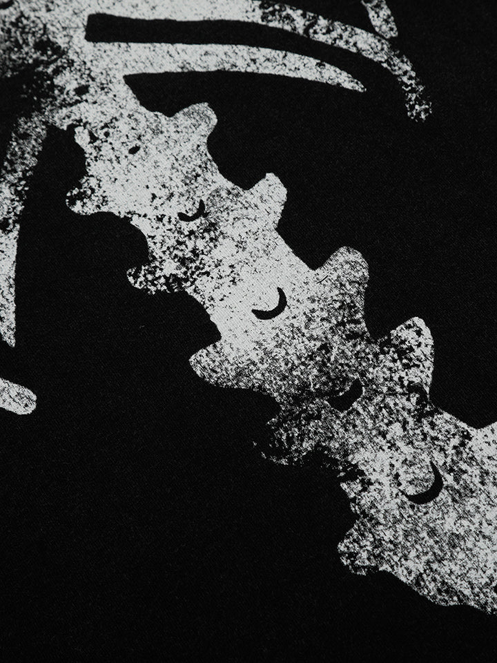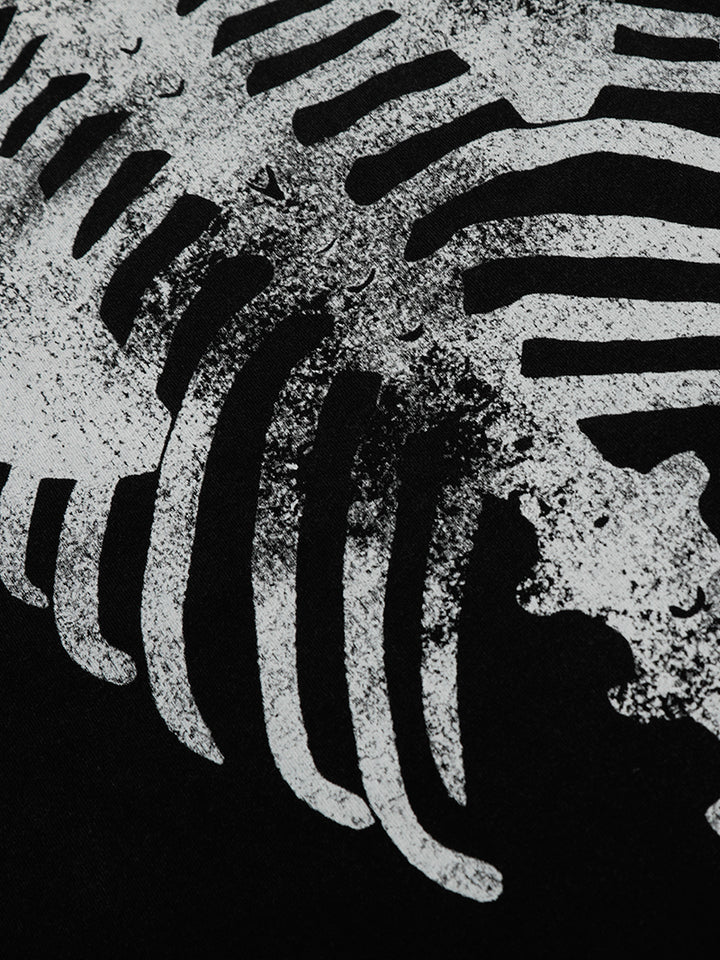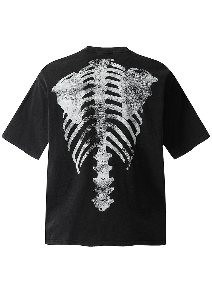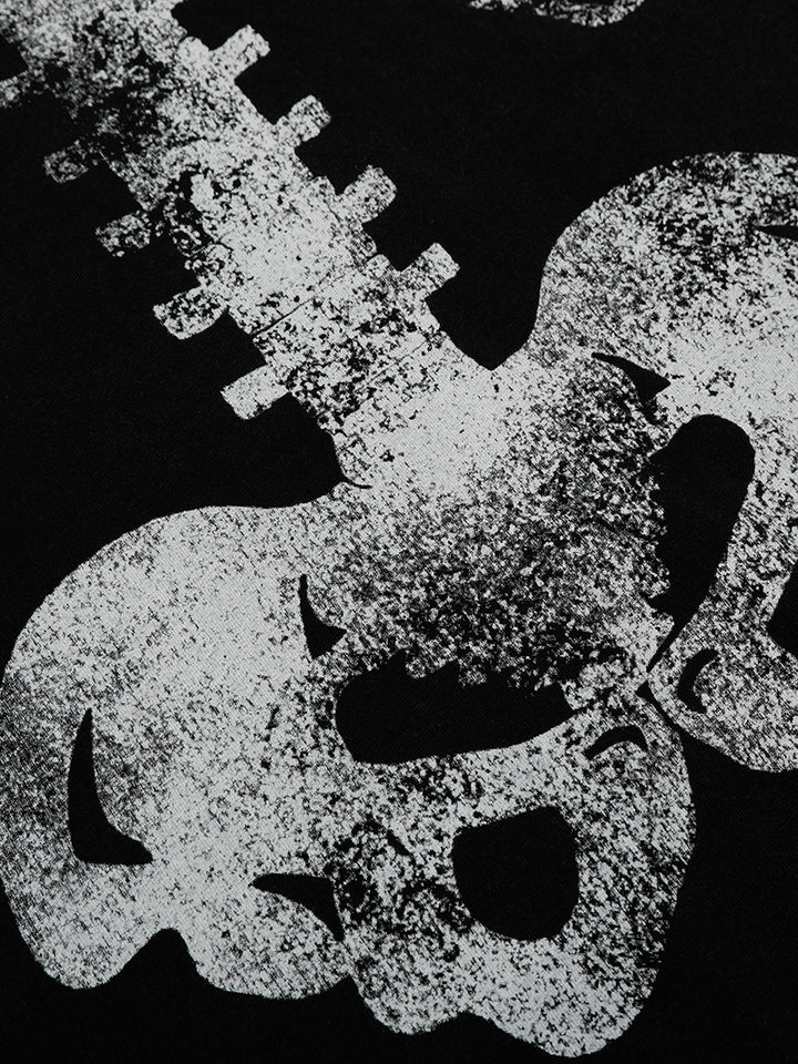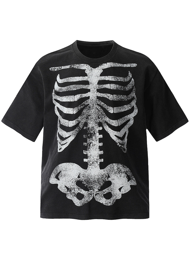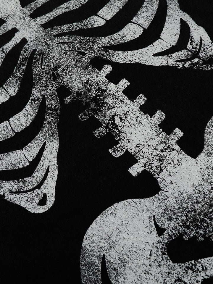 🦴 Bold Skeleton Graphic – Front and back skeleton bone prints deliver a striking and edgy aesthetic, ideal for goth, punk, or Halloween-inspired looks.