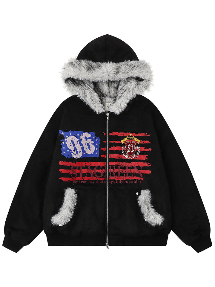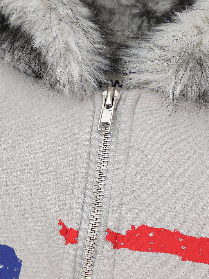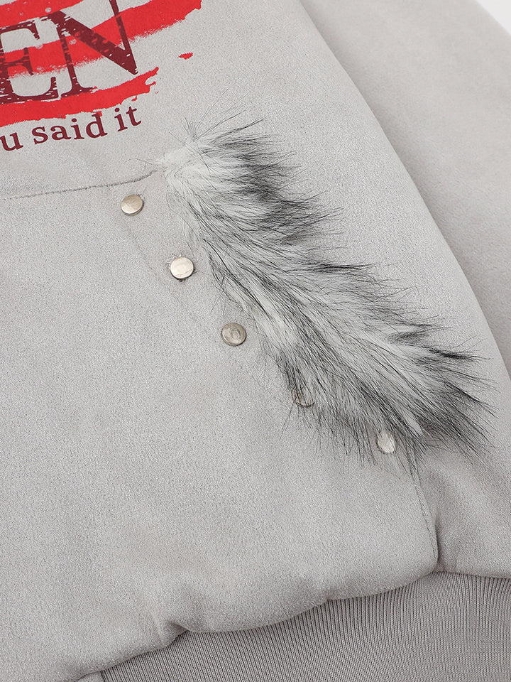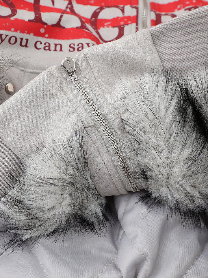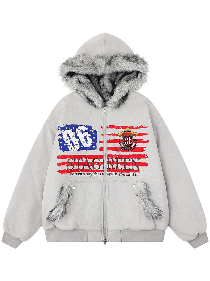 Stay warm and stylish this winter with this oversized cotton-padded jacket. Designed with thick cotton filling, it offers excellent insulation against the cold while remaining breathable and comfortable for daily wear. The faux fur trim on the hood and pockets adds a touch of softness and luxury, while the bold front graphic creates a trendy streetwear edge. Its relaxed oversized fit makes it easy to layer over casual outfits, making it suitable for outdoor activities, commuting, or simply staying cozy on chilly days. A versatile winter essential that combines warmth, comfort, and modern street fashion.